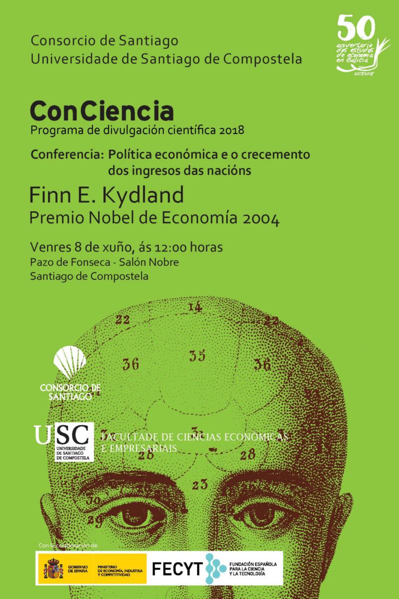O Premio Nobel de Economía Finn E. Kydland visitará a próxima semana a Universidade de Santiago convidado polo Programa ConCiencia. O acto central da visita será a conferencia do venres 8, ás 12.00 horas no Salón Nobre do Colexio de Fonseca, que leva por título ‘ Política económica e o crecemento dos ingresos das nacións’.