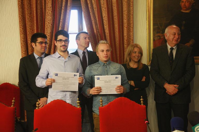 Un premio en metálico de 3.000 euros, seis meses de acceso gratuíto a espazos de incubación e asistencia gratuíta no proceso de constitución dunha empresa son os premios que recibiron I-Grape e Vacsain, primeiro e segundo respectivamente, en calidade de equipos gañadores da primeira convocatoria do programa Argos. Ademais, entregouse un accésit, que ofrecerá acceso ao espazo de incubación empresarial, para o equipo Yhumind. A USC puxo en marcha en xuño de 2013 o programa Argos co obxecto de crear e impulsar equipos emprendedores universitarios integrados por alumnado de últimos anos, posgrao ou titulados recentes capaces de desenvolver un proxecto de negocio innovador. O programa chegou agora ao seu fin coa entrega dos premios da edición 2013 aos tres mellores equipos. En total, no programa inscribíronse 50 persoas procedentes dun total de doce titulacións. i-Grape O primeiro premio i-Grape nace a partir dos datos obtidos polo grupo de investigación LIDSA (Laboratorio de Investigación e Desenvolvemento de Solucións Analíticas) do Departamento de Química Analítica da Facultade de Química. Este equipo situarase no mercado de produtores de materias primas de orixe natural para o seu uso industrial en ámbitos como o farmacéutico (dermocosmética) ou a alimentación. O produto inicialmente ofertado está constituído basicamente por un extracto líquido obtido a partir do subproduto da vinificación da uva branca (Vitis vinifera), con cualidades antioxidantes e antibacterianas. A idea xurde no marco do proxecto ‘Extracción de Polifenois de viños brancos e bagazo de uva; Polifenois non-flavonoides e actividades anti-oxidantes en viños brancos galegos’ que puxo de manifesto a elevada concentración en compostos polifenólicos dos bagazos das variedades brancas galegas. Vendo o potencial destes extractos no mercado, acometeuse a optimización e adaptación do proceso ás condicións industriais establecidas dunha empresa do sector cosmético. Son promotores do equipo Daniel Gómez Fernández-Camiñas, Jesús Álvarez Trabado, Juan José Verdes Gómez, Marta Álvarez Casas e Paula Alexandre Teixeiro. Vacsain O equipo de Vacsain traballarán a produción de autovacinas para acuicultura, con especial atención nas enfermidades parasitarias, ademais de ofrecer servizos de diagnose patolóxica en acuicultura, análise de seguridade alimentaria en moluscos, deseño de sistemas de liberación transdérmica de medicamentos e aplicados ao sector veterinario. Integran este equipo Alejandro Souto Outeiral, Alfonso Alfonsín Nogueira, Boris Janza Paz, Laura León Rodríguez, Luis Nogueiras Nieto, Mariña-Balbanera Fariña Santos e Pablo Ventoso Osorio. Yhumind Yhumind ofrecerá solucións a empresas para a selección adecuada de persoal e a xestión de recursos humanos empregando técnicas de xestión do tempo, coaching, feedback 360º, trastornos psicosociais, adaptación aos postos segundo competencias, desenvolvemento de habilidades e manexo do equilibrio traballo-vida. Ana Carlota Gil Ares, Irene Prieto Díaz, Lorena Pérez Pintos e Paula Valverde Díaz son as promotores deste equipo merecedor do accésit neste primeiro convocatoria de Argos. Os gañadores desta edición déronse a coñecer nun acto público este venres 31 que presidiu o reitor Juan Casares, xunto a quen tamén asistiu a concelleira da Área de Economía, Reyes Leis Rodríguez; o director da Axencia Galega de Innovación; o xerente de Igape Nova, Guillermo Viña; e o director da Área de Valorización, Transferencia e Emprendemento (AVTE), José Luis Villaverde. Argos A AVTE puxo en marcha Argos coa colaboración da incubadora de empresas da USC, Uninova, e as facultades de Ciencias Económicas e Empresariais de Santiago e a de Administración e Dirección de Empresas de Lugo. O obxectivo foi buscar persoas dispostas a traballar en equipo para desenvolver un proxecto de negocio innovador no que embarcarse na busca do seu futuro. As persoas que se inscribiron na convocatoria tiveron acceso a unha carteira de patentes da USC sobre a que podían traballar, ademais de que cada grupo podía desenvolver as súas propias ideas. Xunto a isto, a organización ofreceu información en liña sobre innovación en emprendemento e o acceso a un grupo de traballo Linked-in no que empezar a compartir información e experiencias. O xurado de Argos 2013 seleccionou en segundo lugar ao equipo Vacsain. Foto: Servimav-USC O accésit recaeu en Yhumind, que integran Ana Carlota Gil Ares, Irene Prieto Díaz, Lorena Pérez Pintos e Paula Valverde Díaz. Foto: Servimav-USC No acto estiveron presentes representantes dos seis equipos finalistas de Argos 2013. Foto: Servimav-USC
