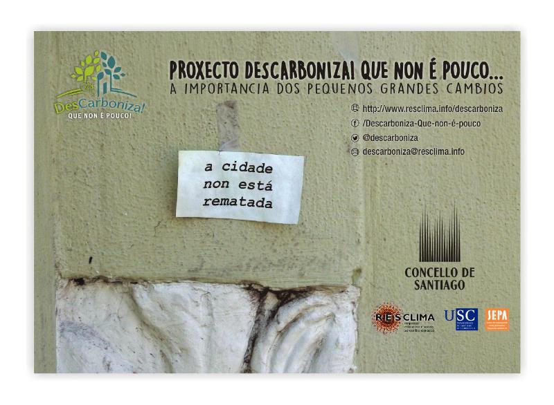 Reducir as emisións de gases de efecto invernadoiro. Este é o obxectivo principal do grupo de investigación de Pedagoxía Social e Educación Ambiental da USC (SEPA) co proxecto ‘ Descarboniza! Que non é pouco’. Con este xogo de palabras, o grupo da USC presenta unha iniciativa que busca organizar e acompañar grupos de persoas que estean dispostas a “descarbonizar” os seus estilos de vida, combatendo dende o ámbito do cotiá o cambio climático. Durante o primeiro semestre de 2017 o grupo SEPA desenvolverá unha iniciativa piloto no Concello de Santiago a través dun convenio de colaboración coa Concellaría de Medio Ambiente e Convivencia.