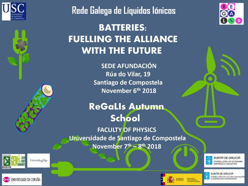 ReGaLIs ReGaLIs é unha estrutura creada en 2012 e financiada pola Xunta de Galicia que engloba trece grupos de investigación das Universidades e centros científicos de Galicia que desenvolven investigación de vangarda en diferentes aspectos destes disolventes avanzados, fundamentais, entre outras aplicacións, para a produción de baterías de alta potencia e estabilidade. Esta rede é o xermolo dun consorcio internacional de grupos de investigación e empresas que actúan coordinadamente neste ámbito, estando prevista a vindeira semana a constitución da Sociedade Europea de Materia Iónica con ocasión da presenza dos investigadores.
