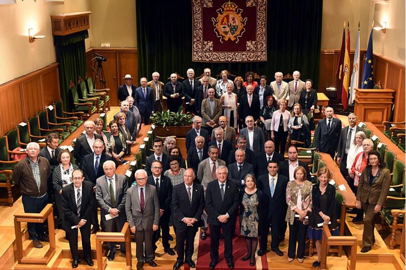 Recibiron a insignia Ventura Álvarez, Felisa Barroso, María de las Mercedes Bermejo, Andrés María Ignacio Bermejo, Mercedes Botana, Elena Cal, Victoriano Calvo, Arturo Campanero, Jenaro Carneiro, Fernando Carou, Mª Milagros Casal, Francisco Castro, Mª Carmen Cea, Arturo Clavero, Celia Couce, María Enjo, Manuel Fernández, Mª José Fernández, Mª Pilar Feros, Ramón Gesto, José M. González, Pilar González, Mª Josefa Juncal, Severino Ángel Lavandeira, Genevieve Le Corre, Fernando Liñares, Mercedes Manteiga, Marcial Martínez, Manuela Moure, Carlos Otero, José Luis Quintela, Jesús Quintela, María Regueiro, Lucía Rodríguez, Manuela Rodríguez, Celia Elena Rosende, José Manuel Rozas, Jesús Sánchez, Josefina Sanjiao, Juan Vázquez, María del Carmen Vázquez, María Elena Veiga, Eduardo Villa, Ramón Villar e María del Carmen Xove, do cadro do PAS.