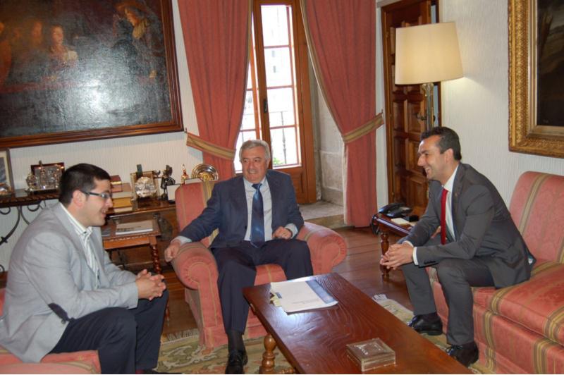 O reitor da USC, Juan Viaño, recibiu este luns no seu despacho de San Xerome o presidente do Colexio Profesional de Enxeñaría en Informática de Galicia (CPEIG), Fernando Suárez Lorenzo. A institución docente compostelá imparte o Grao en Enxeñaría Informática e os Másteres Universitarios en Computación de Altas Prestacións e en Tecnoloxías da Información. Na xuntanza, Fernando Suárez congratulouse pola aposta do reitor compostelán a prol das Tecnoloxías da Información e a Comunicación como “elementos tácticos e estratéxicos para a USC” á vez que dixo compartir o desexo dunha maior consolidación e innovación delas para poder adaptarse ás tendencias actuais. Esta é a primeira xuntanza de Viaño –á que asistiu tamén o vicerreitor de Comunicación e Coordinación, Xosé Pereira– con este colexio profesional, toda vez que o máximo responsable da USC mostrara a súa preocupación e interese no ámbito das TIC como área estratéxica non só no ámbito universitario senón tamén económico e social.