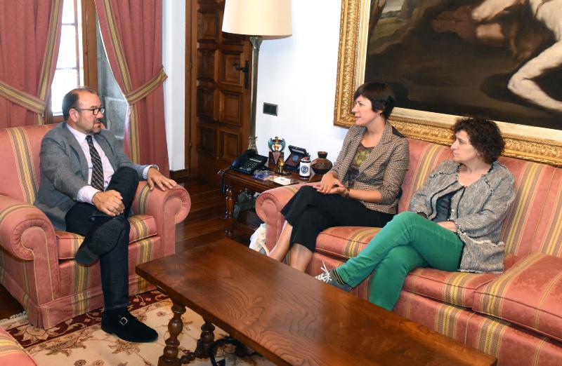 O reitor da Universidade de Santiago, Antonio López, recibiu este xoves no seu despacho de San Xerome á parlamentaria e portavoz nacional do BNG, Ana Pontón, que estaba acompañada pola concelleira de Santiago e deputada provincial da Coruña, Goretti Sanmartín.