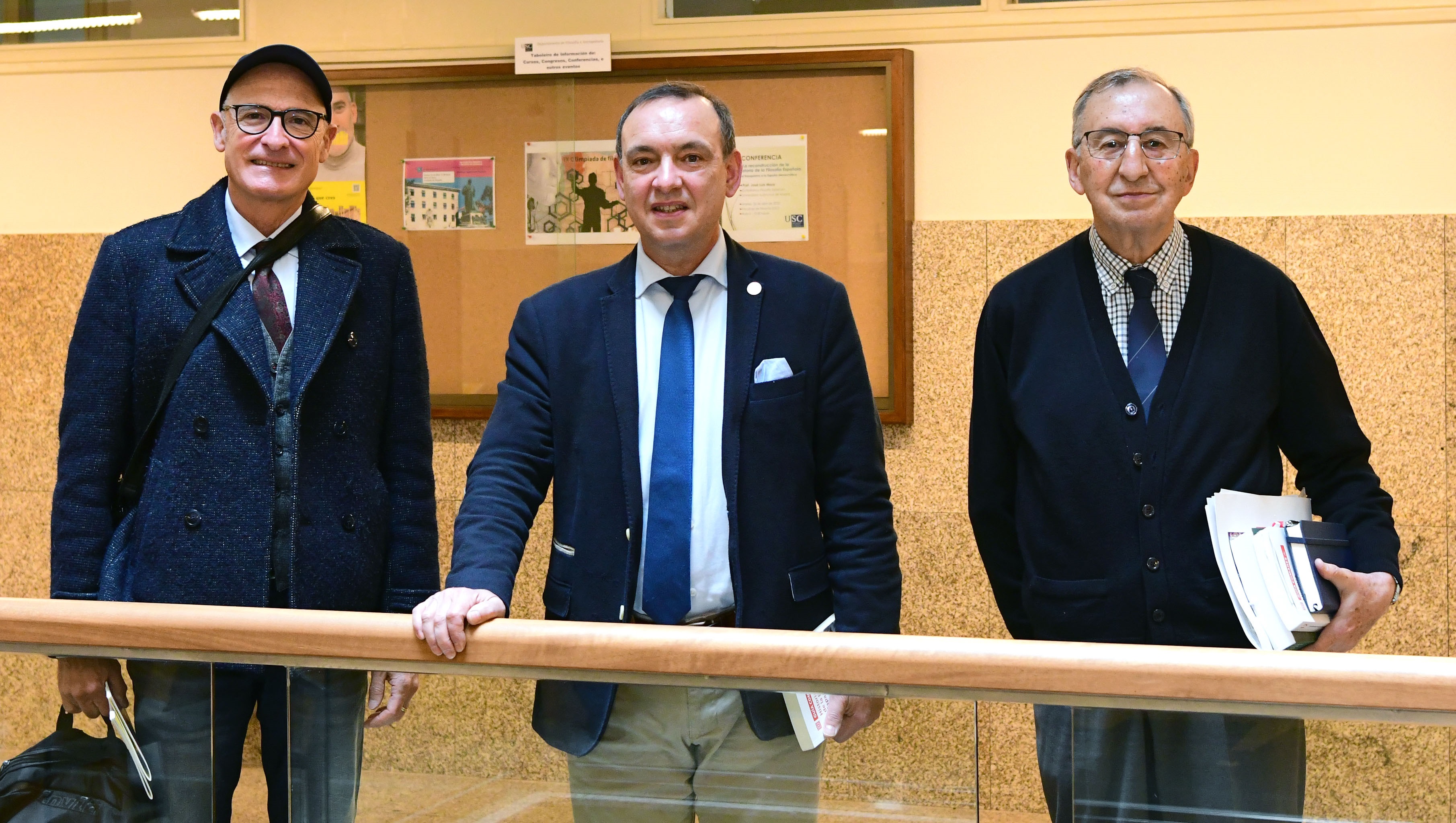 Pola súa parte, a Facultade de Filosofía celebra tamén este martes 26 de abril a festividade do centro, con dúas actividades académicas. A conferencia 'A reconstrución da Historia da Filosofía Española. Do franquismo á España democrática', a cargo de José Luis Mora García, profesor xubilado de Filosofía Española da Universidade Autónoma de Madrid e presidente da Asociación do Hispanismo Filosófico entre 2004 e 2017, abriu este martes o programa de actividades. Xa en quenda de tarde, no Salón de Actos, José Miguel Sagüillo Fernández-Vega, profesor xubilado de Lóxica e Filosofía da Ciencia da USC e decano da Facultade de Filosofía entre os anos 2017 e 2018, pronuncia a lección maxistral con motivo da devandita festividade. A lección titulada 'Un concepto dinámico e relativo de paradoxo', conta coa presentación do decano, Marcelino Agís Villaverde. A lección foi editada pola Imprenta Universitaria da USC e entregada aos asistentes.