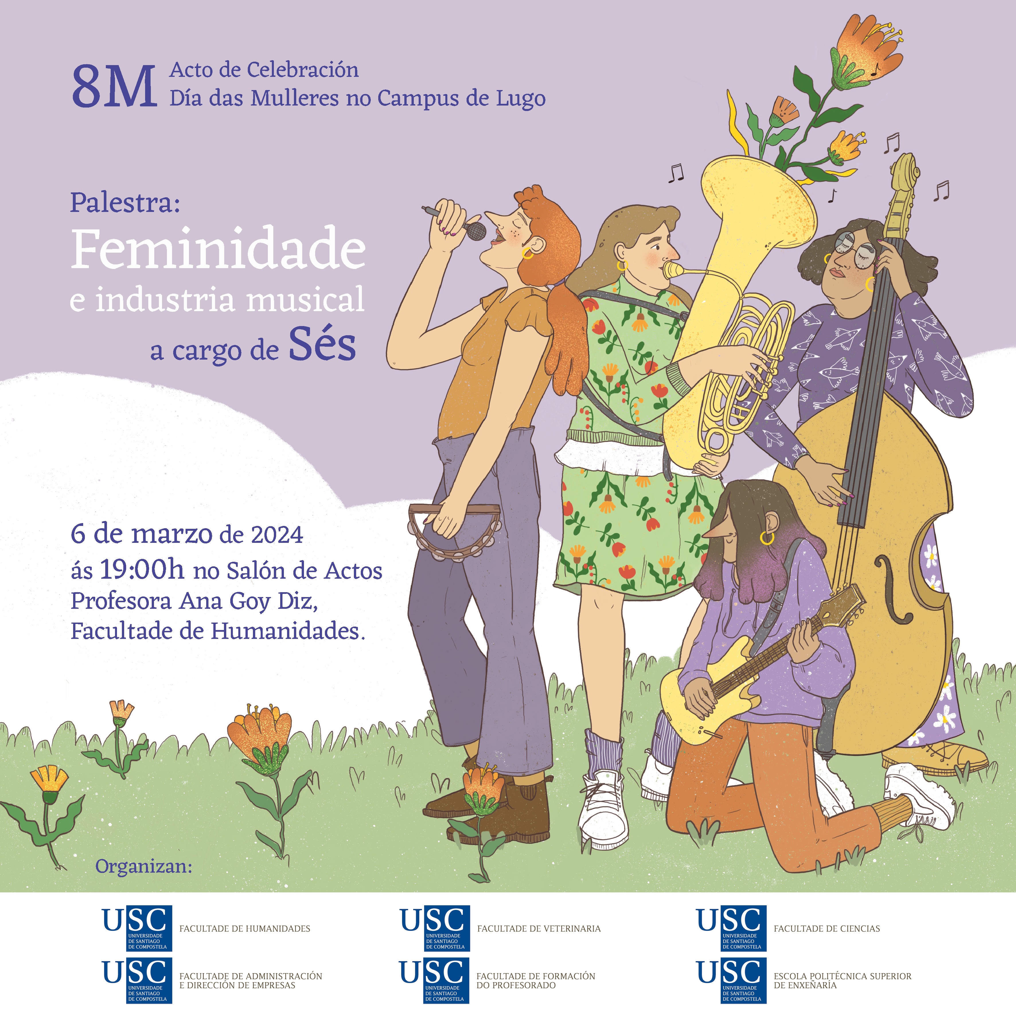 No Campus de Lugo, a artista e cantautora galega María Xosé Silvar, Sés, ofrece este mércores 6 de marzo, a partir das 19.00 horas, no Salón de Actos 'Profesora Ana Goy Diz' da Facultade de Humanidades, o relatorio 'Feminidade e industria musical'. A palestra é de acceso libre, de balde e aberta á participación de todo o público interesado.