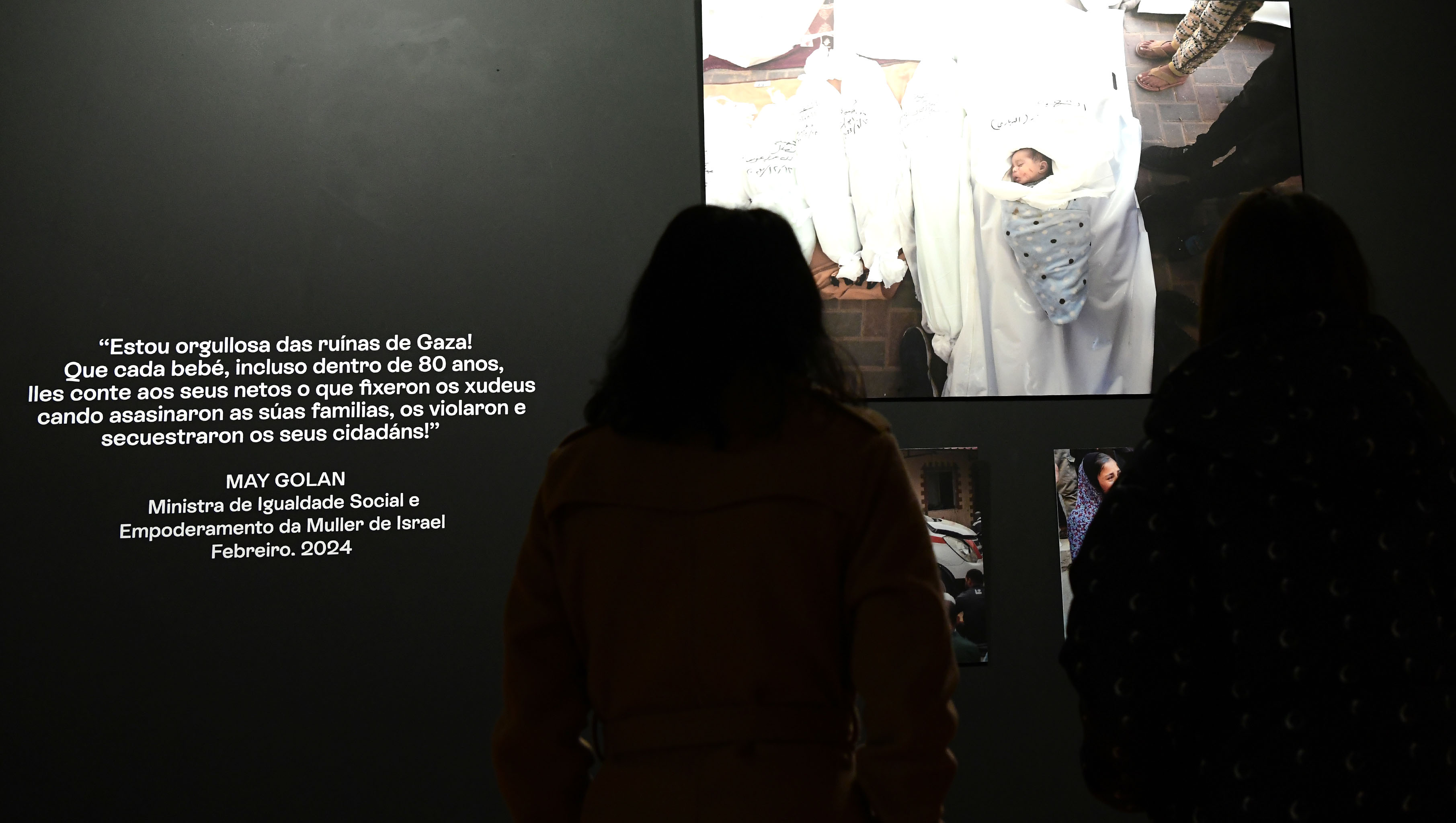 26 fotografías, o documental Hospital Al Shifa: os crimes soterrados cedido pola televisión Al Jazeera, vídeo-testemuños dos reporteiros gráficos e unha creación artística compoñen esta mostra que poderá visitarse en horario de 11:00 a 14:00 horas e de 17:00 a 20:00 horas.