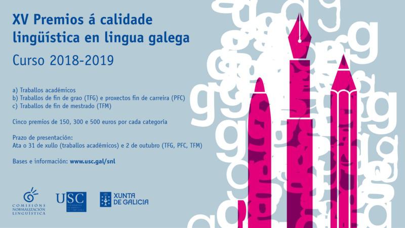 A USC acaba de resolver os XV Premios á calidade lingüística nos Traballos Fin de Grao (TFG) e Fin de Mestrado (TFM) que buscan fomentar entre o alumnado a cultura da calidade ligada ao uso do galego. Dende o Servizo de Normalización Lingüística destacan o gran número de candidaturas presentadas, 72 TFG e 64 TFM, fronte aos 68 TFG e 35 TFM que concorreron á convocatoria do ano pasado.