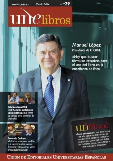 A nova xunta directiva da Unión de Editoriais Universitarias Españolas (UNE) elixida recentemente para o bienio 2014-16 encomendou ao director de Publicacións da USC, Juan L. Blanco Valdés, a dirección de Unelibros, o boletín semestral da asociación. En dúas entregas anuais de primavera e outono, Unelibros, que se edita en papel nunha tiraxe de 4.000 exemplares e en formato dixital aberto, achega ao sector editorial e á comunidade universitaria as novidades das 67 editoriais asociadas. Pero ademais contén a crónica das múltiples actividades e proxectos da UNE, entrevistas de actualidade, informes, reportaxes e páxinas de opinión sobre os máis diversos aspectos da edición universitaria no contexto contemporáneo. Fundada no ano 2000 coa intención de transmitir a elevada calidade das publicacións universitarias ao tempo de prestixiar a edición universitaria perante a sociedade, Unelibros chegou a converterse nestes quince anos no «buque-insignia» da UNE. Sobre esta sólida traxectoria, a intención do novo director é “repensar” a forma, obxecto e alcance do boletín, “non porque teña deixado de cumprir a súa función inicial, senón, ben en troques, porque se pode e se debe mellorar, nun momento, sobre todo, de mudanzas profundas nos deseños e nos modos de difusión dos produtos promocionais e informativos”.