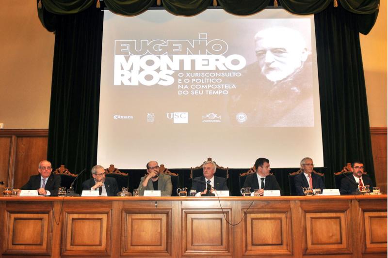 A traxectoria vital, intelectual e política de Eugenio Montero Ríos aparece revisada nunha mostra que se pode visitar ata o 31 de outubro no Colexio de Fonseca. ‘Eugenio Montero Ríos: o xurisconsulto e o político na Compostela do seu tempo’ constitúe a primeira ampla retrospectiva realizada sobre o prócer no centenario do seu pasamento. A colaboración da Deputación Provincial da Coruña, o Concello de Santiago, o Consorcio da Cidade, ABANCA e a Xunta de Galicia a través da Dirección Xeral de Xustiza e a Secretaría Xeral de Cultura permitiu reunir un conxunto de obras que poñen de manifesto a influencia de Eugenio Montero Ríos na transformación da cidade de Santiago. Montero Ríos desempeñou un papel relevante durante a Restauración como líder político e como promotor de construcións civís executadas baixo o seu «manto protector», tal como é o caso, entre outras, da liña de ferrocarril Cornes-Carril, a ampliación e reforma do edificio da Universidade, a Escola de Veterinaria, a Facultade de Medicina e Hospital Clínico, o Colexio de Xordomudos e Cegos, ademais da promoción da Exposición Rexional Galega (1909). A exposición inaugurouse este martes nun acto ao que asistiron o reitor da USC, Juan Viaño Rey; o presidente do Ateneo de Santiago de Compostela, Salvador García-Bodaño Zunzunegui; presidente da Real Sociedad Económica de Amigos do País, Juan Bautista de la Salle Barreiro Pérez; o presidente da Cámara Oficial de Comercio, Industria, Servizos e Navegación de Santiago de Compostela, Jesús Asorey Carril; e o decano do Ilustre Colexio de Avogados de Santiago de Compostela, Evaristo Nogueira Pol. Todos eles representantes das entidades promotoras dunha montaxe que, coordinada pola Universidade de Santiago, pretende poñer en valor o inxente labor desta destacada figura santiaguesa de finais do século XIX e comezos do XX. Comisariada pola doutora europea en Historia e profesora na Facultade de Xeografía e Historia da USC Margarita Barral Martínez e polo arquitecto e profesor da Escola Técnica Superior de Arquitectura da UDC Pablo Costa Buján, a mostra poderá visitarse en horario de luns a sábado de 11.00 a 14.00 e de 17.00 a 20.00 horas. O reitor presidiu a inauguración da mostra sobre Montero Ríos (Foto: Santi Alvite) As autoridades posaron xunto a un busto do ilustre político e intelectual (Foto: Santi Alvite)