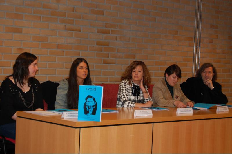 Cristina Fiaño, Sandra López, Carmen Varela, Isabel González Rey e Claudio Rodríguez Fer, na presentación da revista 'Evohé'