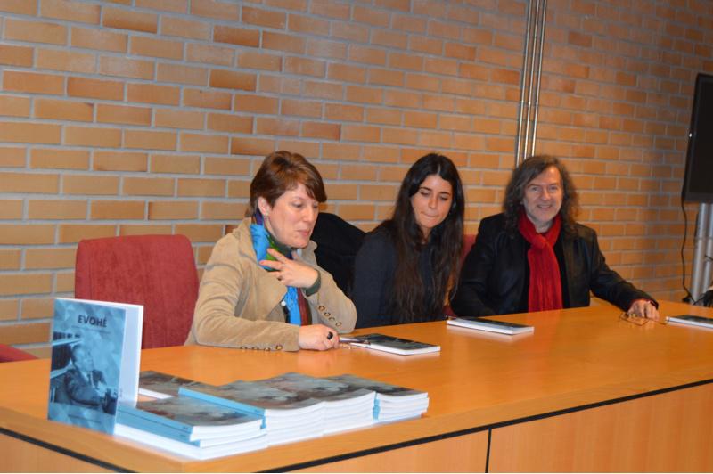Isabel González, Cristina Fiaño e Claudio Rodríguez Fer, na presentación do último número de Evohé