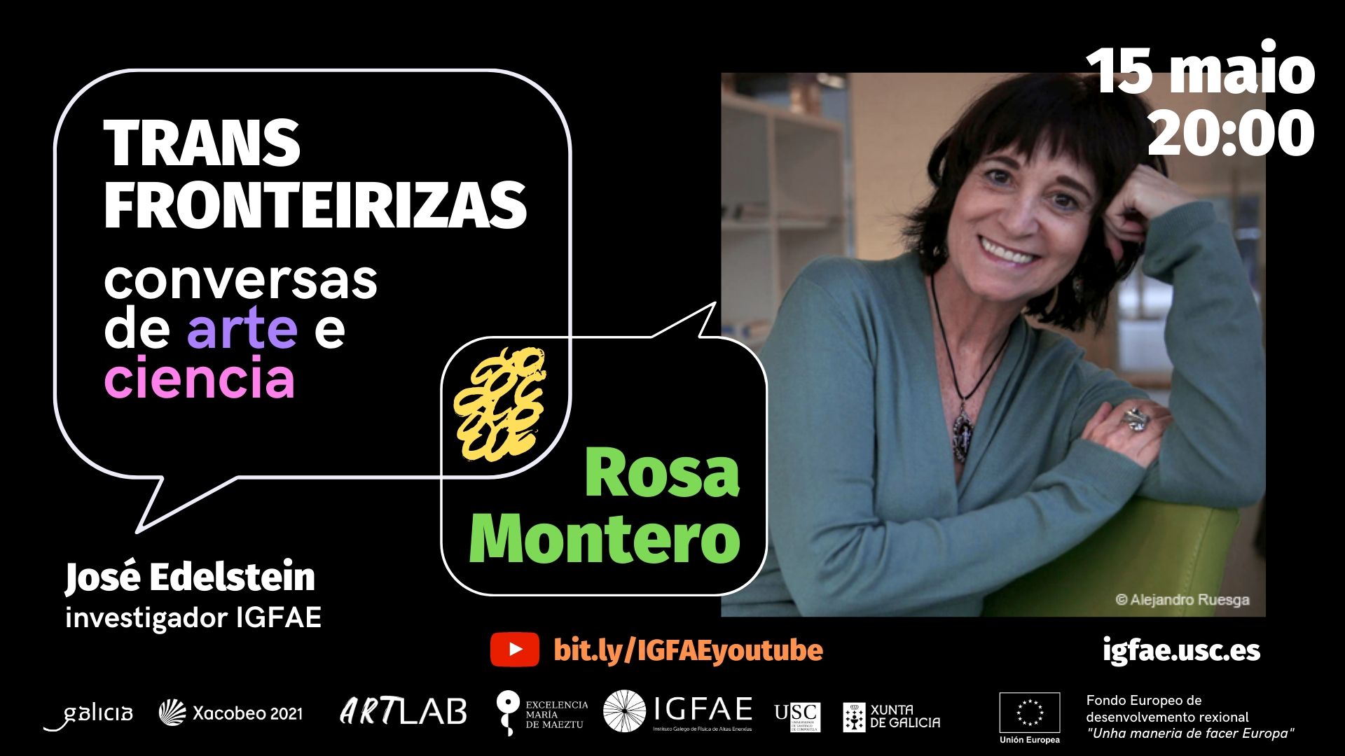 Baixo o título 'Transfronteirizas, conversas de arte e ciencia', este proxecto traerá nos próximos meses a figuras coas que exploraremos as interseccións entre a física, a ciencia e a cultura, así como outras reflexións cun enfoque interdisciplinar. A escritora e xornalista Rosa Montero será este venres 15 de maio, ás 20.00 horas, a primeira entrevistada que participará nesta iniciativa. A través da canle de Youtube do IGFAE, o público poderá seguir e participar neste diálogo en directo dirixido polo profesor da USC José Edelstein.