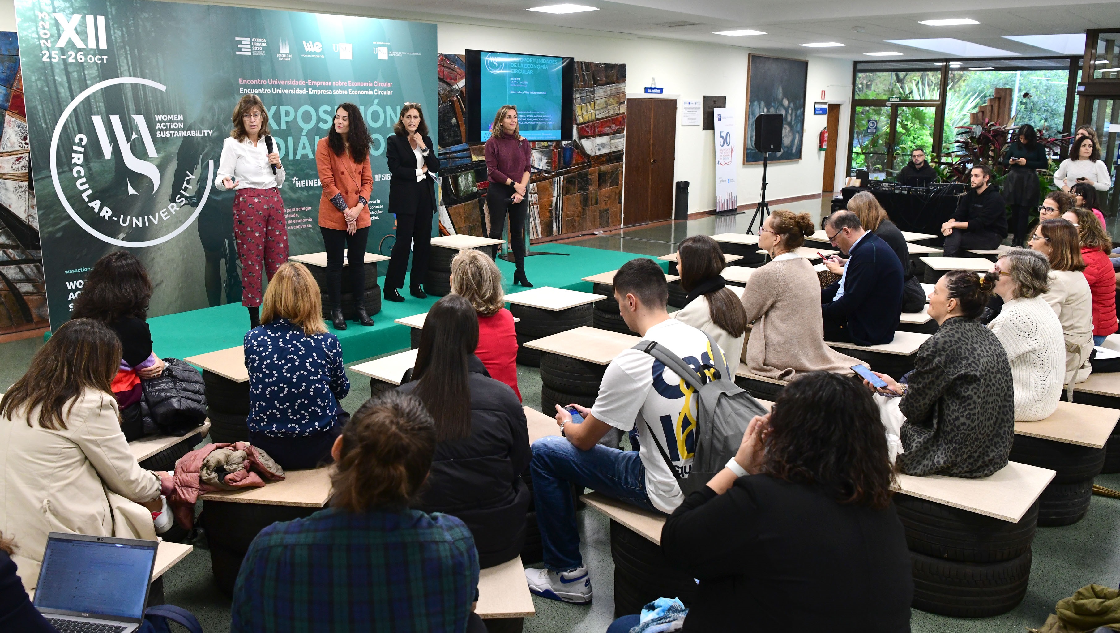 USC, Concello de Santiago e o Grupo de Traballo de Economía Circular WAS (Woman Action Sustainability) poñen en marcha os días 25 e 26 de outubro, na Facultade de Ciencias Económicas e Empresariais, o Encontro Universidade-Empresa sobre Economía Circular co obxectivo de fomentar o diálogo entre empresas e entidades con estudantado e persoal investigador especialista nesta materia. Ademais, a través do Concurso Retos WAS Circulamos-USC, o alumnado poderá achegar a súa visión e aplicar os seus coñecementos a retos reais de diferentes empresas e entidades. A este programa de actividades súmase tamén o venres 27 a Feira de Emprendedoras de Compostela que se desenvolverá a partir das 10.00 horas no Centro Sociocultural O Ensanche. Esta quinta edición lévase a cabo no marco dos principios da Axenda Urbana 2030 e céntrase no debate sobre un modelo económico pensado por e para as persoas, tal e como apuntan dende a organización