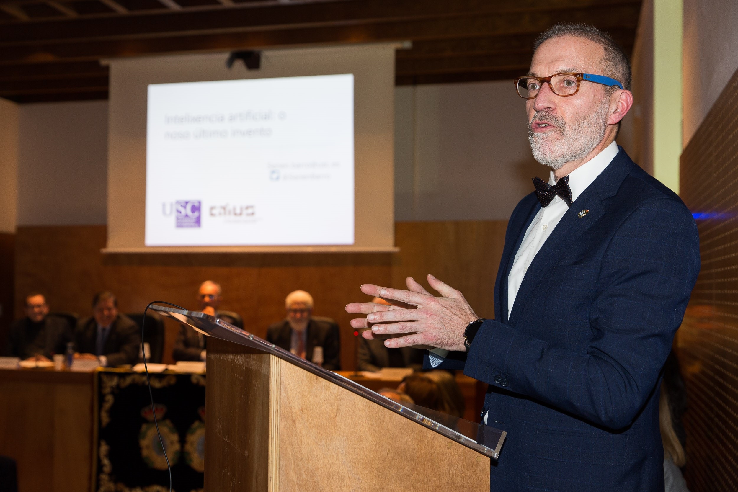 O que fora reitor da institución compostelá apuntou que “aínda que a intelixencia artificial comezou con intentos de modelar o pensamento humano como vía para avanzar tanto no coñecemento do noso cerebro como para desenvolver máquinas capaces de imitalo, a día de hoxe, despois de sucesivos períodos de luces e sombras, vivimos unha aproximación moito máis pragmática, que busca desenvolver sistemas que empregan a IA na resolución de problemas”.