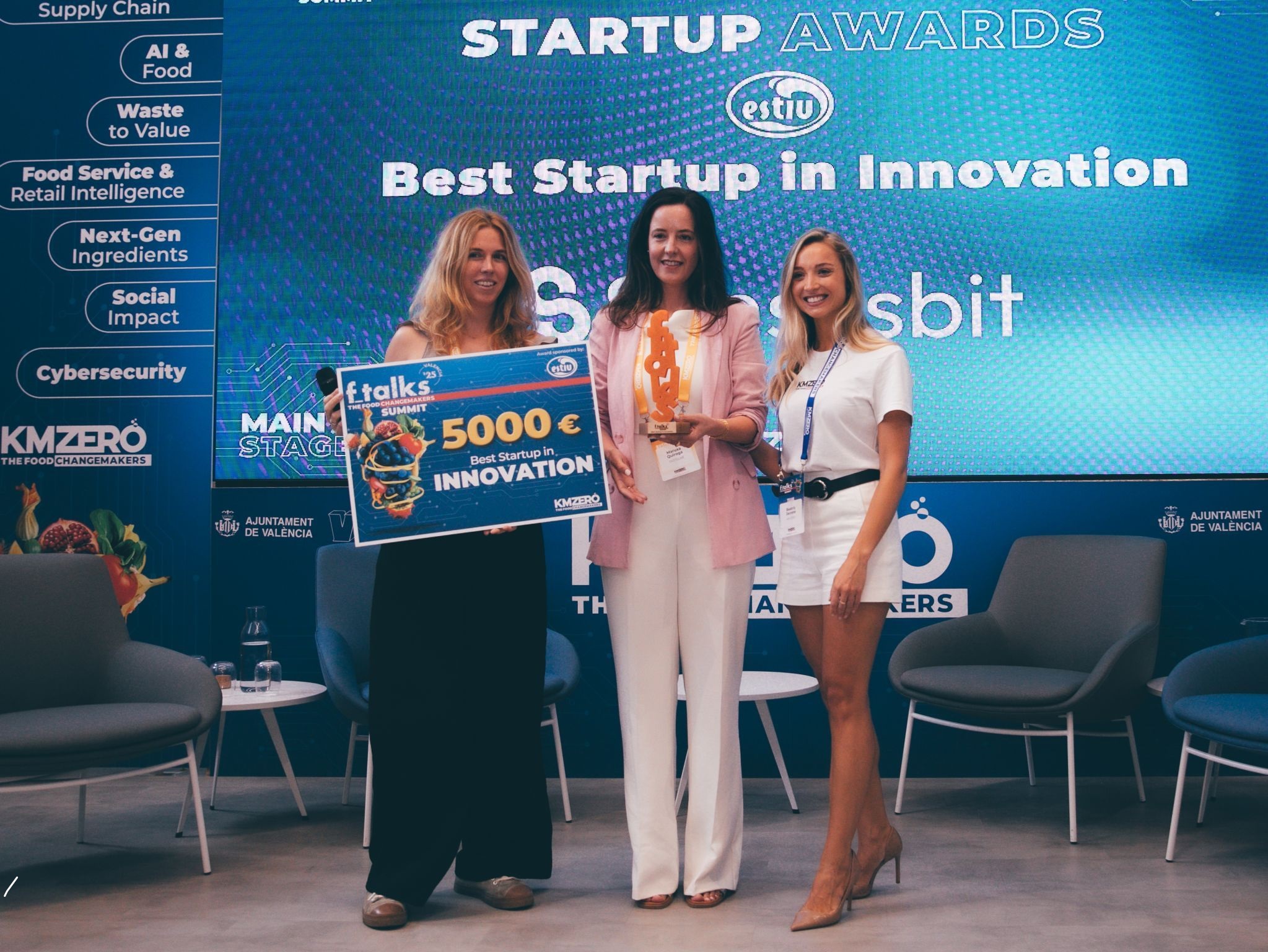 O premio, dotado con 5.000 euros e entregado por Marta Bertomeu, responsable de Innovación e RSC de Helados Estiu, supón ademais a incorporación de Sensesbit á comunidade de KM ZERO Food Innovation Hub que conecta startups disruptivas con inversores, corporacións e entidades públicas do sector agroalimentario para escalar proxectos de impacto.