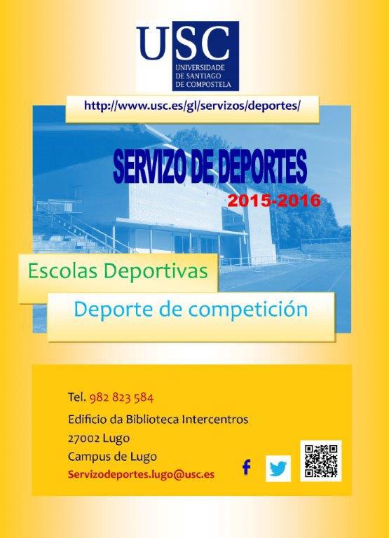 O Servizo de Deportes da USC inicia o curso coa apertura do prazo de inscricións para as distintas escolas deportivas para o curso 2015-2016, unha programación que no caso do campus de Lugo abrangue un total de nove disciplinas ou actividades diferentes. A oferta está dirixida a integrantes da comunidade universitaria así como ao resto da cidadanía non vinculada directamente á USC.