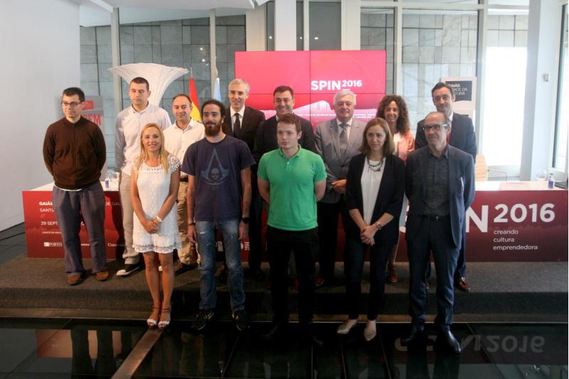 A USC, a Xunta de Galicia e RedEmprendia deron a coñecer este martes o acordo de colaboración para a organización de Spin2016, a gran cita para emprender desde a universidade que terá lugar en Santiago do 29 de setembro ao 1 de outubro. O acto contou coa presenza dos conselleiros de Cultura, Educación e Ordenación Universitaria e de Economía, Emprego e Industria, Román Rodríguez e Francisco Conde; o reitor da USC, Juan Viaño; a directora xerente da Fundación Cidade da Cultura de Galicia, Beatriz González; o director xeral do Igape, Javier Aguilera; e o director xeral de RedEmprendia, Senén Barro; así como os emprendedores galegos seleccionados no programa Model2Market de Spin2016.