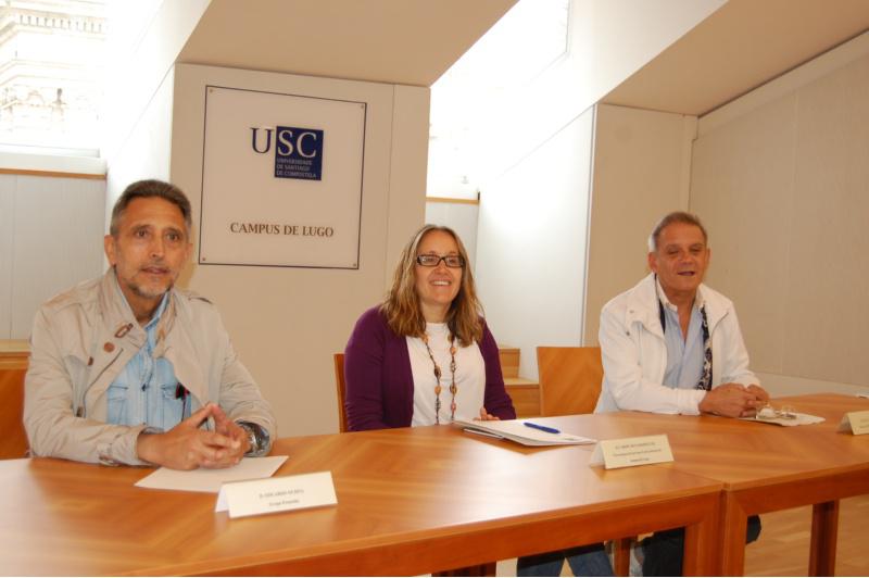 Ochoa, Silva e Zahera, na presentación da programación de teatro, danza e fotografía no campus de Lugo