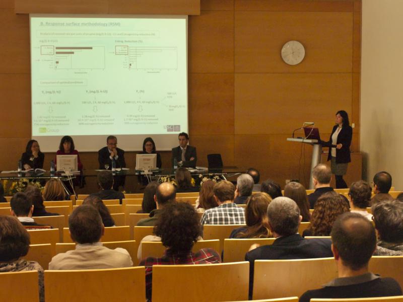 Lucía Lloret, defendendo a súa tese de doutoramento na ETSE