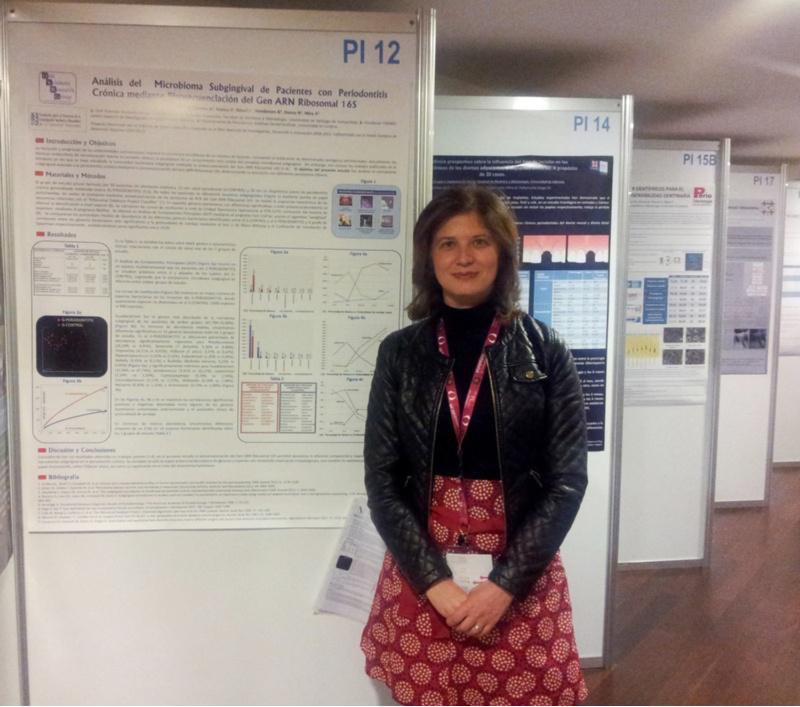 O grupo Oral Sciences Research Group da USC acaba de recibir o premio ao mellor póster de investigación na 48ª Reunión Anual da Sociedade Española de Periodoncia que contou coa asistencia de máis de 2.000 profesionais do ámbito da odontoloxía. O traballo premiado levaba por título ‘ Análise do microbioma subxenxival de pacientes con periodontite crónica mediante pirosecuenciación do xene ARN ribosomal 16S’. O póster inclúese nun proxecto financiado polo Instituto Carlos III sobre o desenvolvemento dun modelo de sistema biolóxico a partir da análise das interaccións bacterianas e leucocitarias na enfermidade periodontal, cuxa investigadora principal é a coordinadora do grupo, a profesora Inmaculada Tomás. No proxecto colaboran ademais o profesor Juan Blanco, da Unidade de Periodoncia do Departamento de Estomatoloxía da USC; o grupo do doutor Alejandro Mira (Fundación FISABIO do Centro Superior de Investigación en Saúde Pública); e o grupo do profesor do Departamento de Periodoncia do Eastman Dental Institute (Universidade de Londres) Nikos Donos. Como se recolle no póster premiado, a pirosecuenciación do xene ARN Ribosomal 16S permitiu demostrar a diferente composición e maior diversidade do microbioma subxenxival na periodontite crónica. Os investigadores constatan non só a maior presenza e abundancia de xéneros e especies con recoñecida implicación etiopatoxénica, senón tamén a coexistencia doutros con papel descoñecido, como Filifactor alocis, así como a súa repercusión no resto do ecosistema bacteriano.