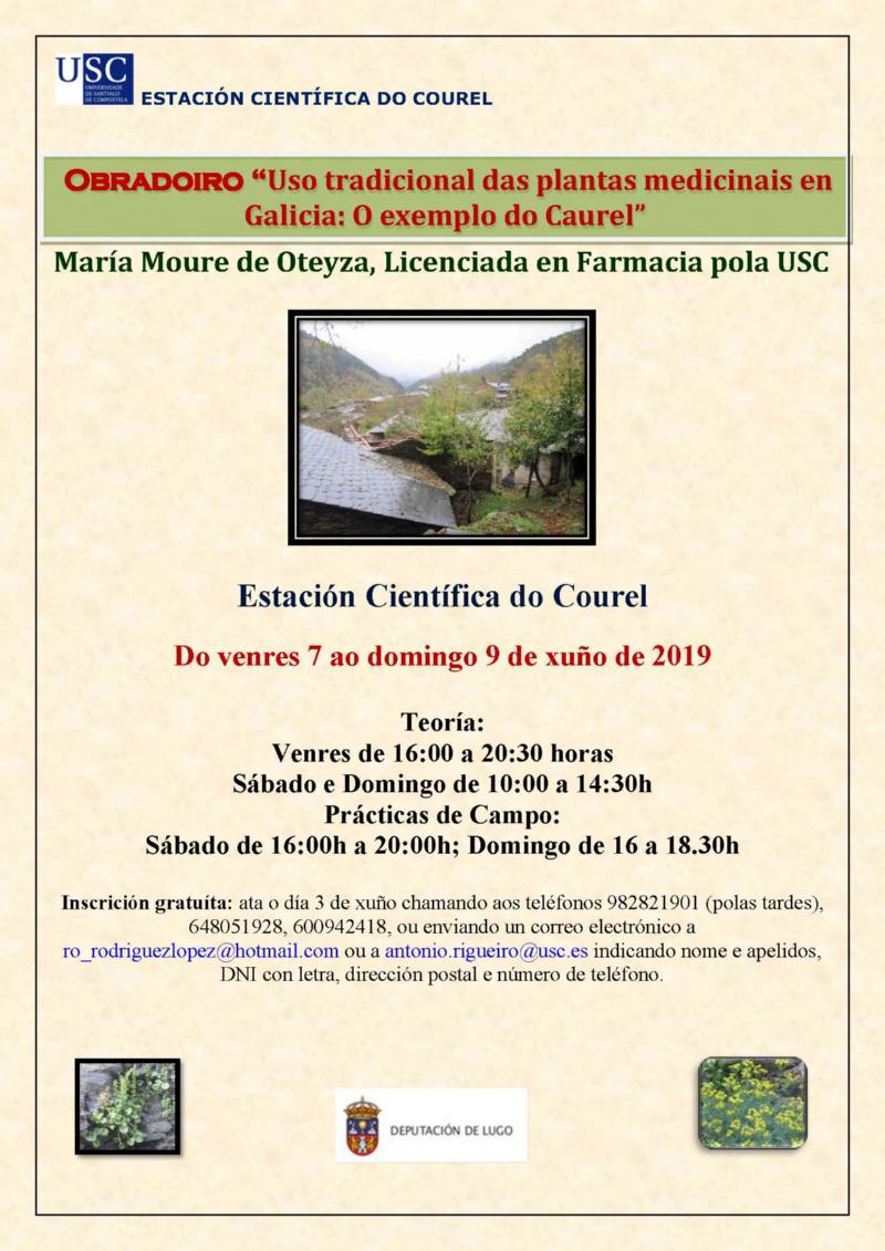 A Estación Científica do Courel acolle desde este venres ata o domingo 9 de xuño un obradoiro intensivo sobre o uso tradicional de plantas medicinais en Galicia, un programa intensivo que será impartido pola licenciada en Farmacia pola USC María Moure Oteyza e a través do que o alumnado matriculado terá a oportunidade de identificar e coñecer os usos e aplicacións das plantas medicinais localizadas no Courel.