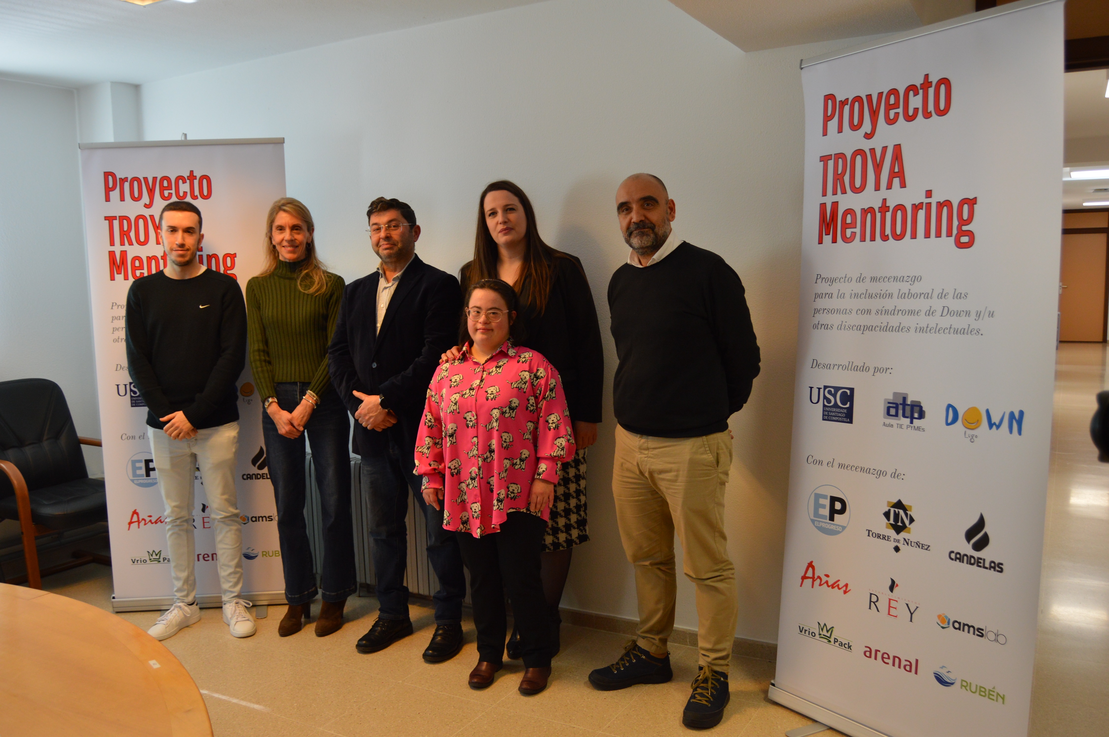 A USC,  a través da súa Aula TIC-Pemes, impulsa a formación en habilidades empresariais de persoas con discapacidade e síndrome en Down ao abeiro do programa Troia-mentoring, unha nova iniciativa de capacitación e inclusión social promovida pola catedrática da área de Organización de Empresas Ángeles López Cabarcos xunto coa Asociación Down Lugo, que bota a andar este martes na Facultade de Administración e Dirección de Empresas do Campus Terra con 8 participantes, que, acompañados de voluntariado seleccionado polo Servizo de Participación e Integración Universitaria da USC, cursará 30 horas de formación práctica específica para logo completar estadías prácticas profesionais en empresas e institucións durante os meses de maio e xuño.