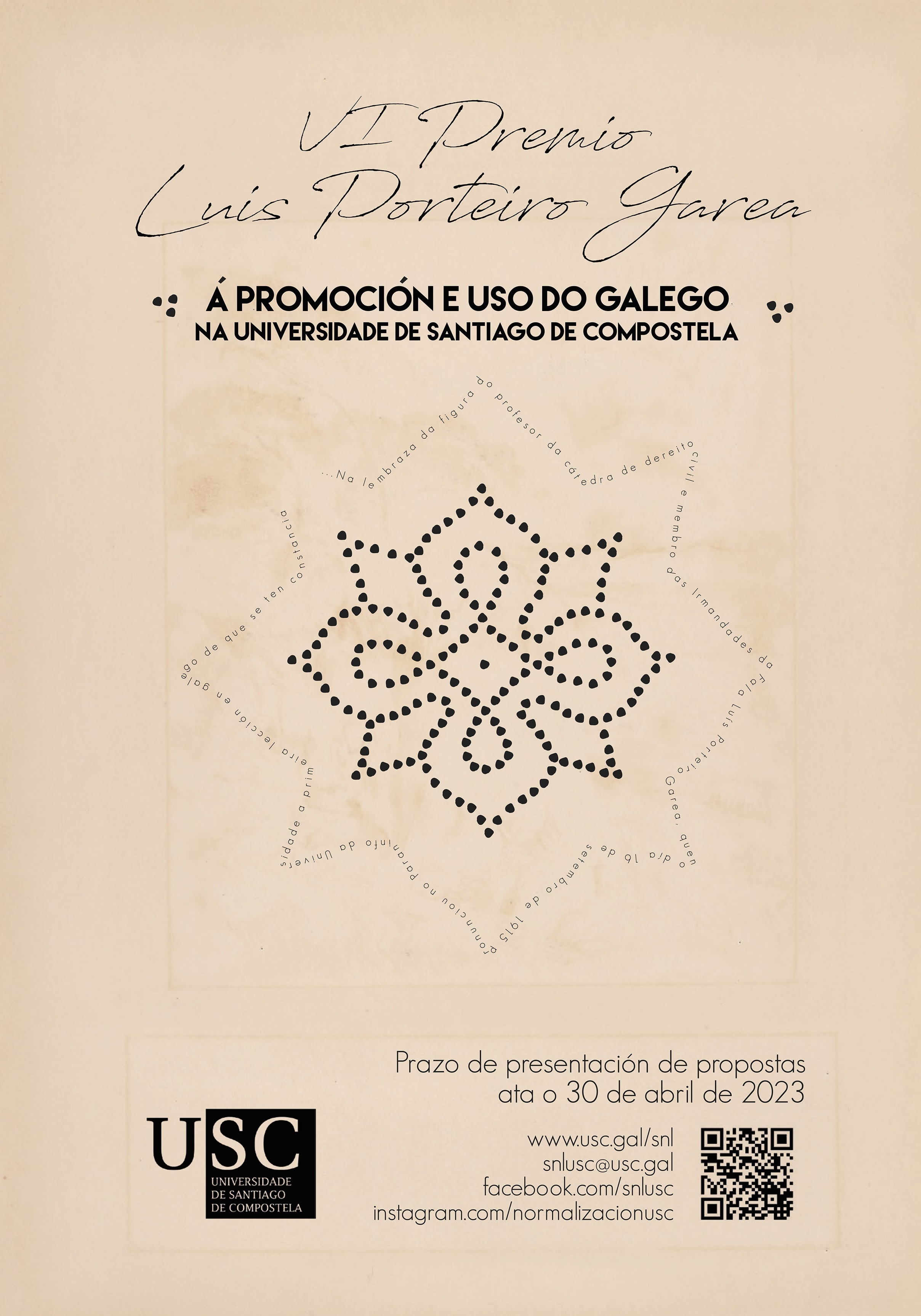 A USC mantén aberta a convocatoria da sexta edición do Premio Luís Porteiro Garea que lembra a figura do profesor da cátedra de Dereito Civil e membro das Irmandades da Fala, Luís Porteiro Garea, quen o día 16 de setembro de 1915 pronunciou a primeira lección en galego na Universidade de que se ten constancia. Con este premio quérese distinguir a iniciativa, o traballo ou a traxectoria daquelas persoas, entidades ou colectivos, tanto actuais como pasadas da USC (alumnado, persoal de administración e servizos, persoal docente e investigador), que contribuíran á normalización da lingua galega na propia USC.
