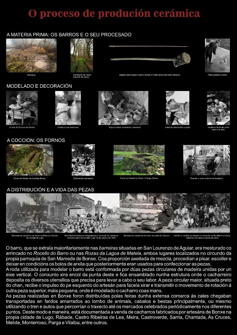 A USC contribúe á documentación e ao estudo da cerámica tradicional de Bonxe, unha temática sobre a que versa a exposición ‘Formas tradicionais da cerámica popular. Terra Chá Bonxe’, que permanece aberta na luguesa Capela de Santa María ata o 10 de febreiro de 2019, coa elaboración de vinte paneis nos que se realiza un amplo resumo sobre a localización dos principais elementos desta cerámica, desde a localización nun Sistema de Información Xeográfico (XIS) das barreiras, ou os fornos, á identificación dos camiños tradicionais utilizados polos alfareiros para ir buscar barro ou para distribuír os seus cacharros polas feiras próximas.