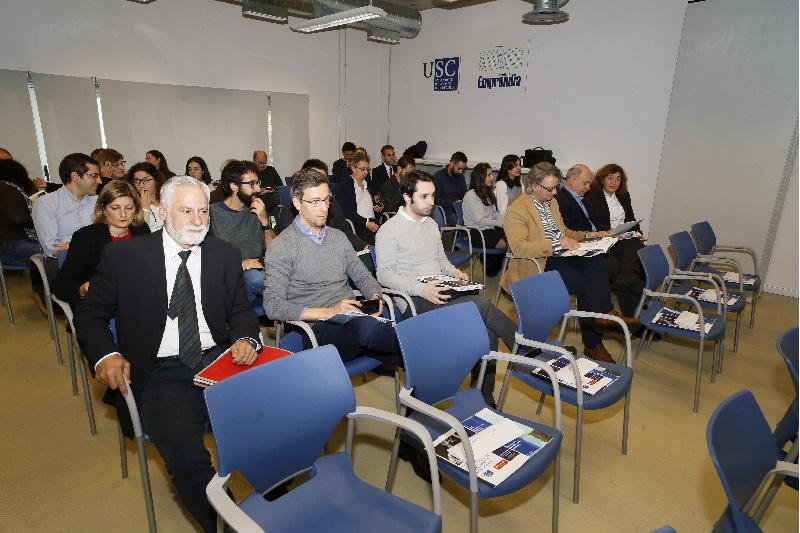 O acto celebrouse no edificio Emprendia. Foto: José M. Salgado En primeiro termo e de dereita a esquerda, Ysabel Santos, Manuel Lemos, Adolfo Paz, José M. Díaz, Manuel Mucientes e Fernando Cobo. Foto: José M. Salgado Imaxe de grupo ao finalizar o acto. Foto: José M. Salgado