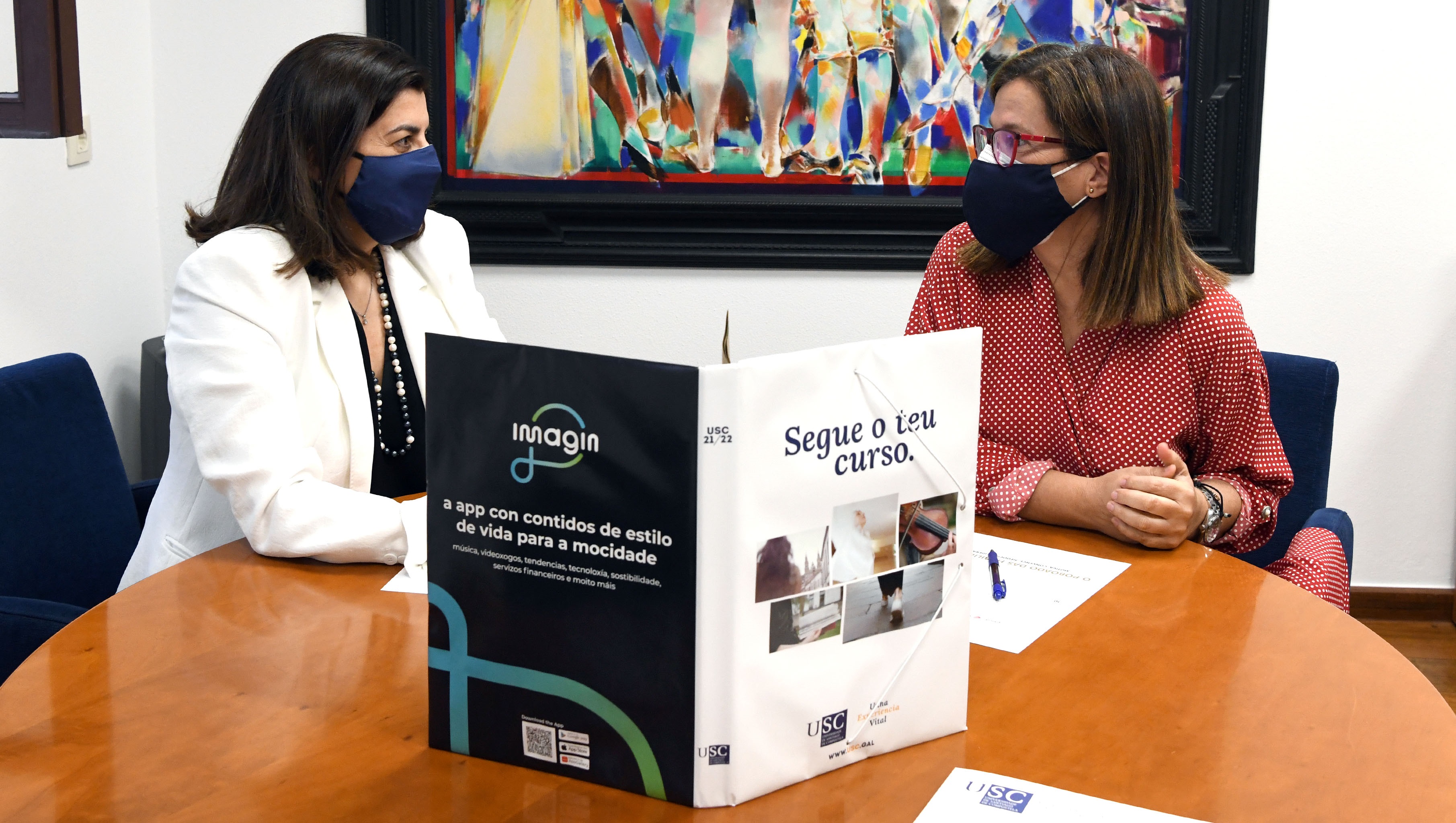 A realización de accións divulgativas como cursos, seminarios, conferencias e reunións conforma o ámbito no que se enmarca o acordo de colaboración que USC e CaixaBank acaban de asinar. A vicerreitora de Igualdade, Cultura e Servizos da USC, Mar Lorenzo, e a coordinadora da Área de Institucións de CaixaBank en Galicia, Mª Jesús García Piñeiro, mantiveron unha xuntanza no Colexio San Xerome para avaliar as accións que integran o acordo que manteñen a institución académica e a entidade bancaria.