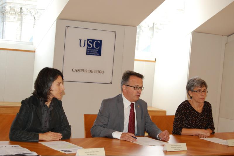O vicerreitor de Coordinación do campus de Lugo, Javier Bueno Lema; a directora da comisión de normalización lingüística da Facultade de Veterinaria, Marta López Alonso, e a directora da Biblioteca Intercentros do campus de Lugo, Julia Cantalapiedra, presentaron este xoves a programación de actividades promovidas no campus de Lugo pola plataforma Proxéctate en Galego co gallo da celebración do V Día da Ciencia en Galego e a través das que buscan achegar e dar a coñecer á sociedade luguesa o traballo e que se desenvolve no campus de Lugo. O campus de Lugo capitalizará nesta edición os actos organizados pola USC co gallo do Día da Ciencia en Galega, unha efeméride que na súa quinta edición rende homenaxe á figura internacional de Isaac Newton, así como a Xosé Rodríguez, científico galego coñecido como matemático do Berbés, e aos sensores, no eido dos equipamentos científicos e tecnolóxicos. O abano de actividades planificado pola plataforma Proxéctate en Galego, na que están representadas todas as comisións de normalización lingüística do campus de Lugo, para a celebración desta efeméride desenvolveranse os días 4 e 8 de novembro. O programa de actos do vindeiro martes desenvolverase en quenda de tarde, a partir das 17.00 horas, e comezará cunha visita guiada a exposición ‘Sensores’, organizada por Igaciencia e que mostra ao público na sala de exposicións da Deputación Provincial de Lugo, un elenco de obras e pezas artísticas que evolucionan co tempo e que interactúan co espectador grazas a unha serie de sensores que recollen as súas reaccións e movementos. Unha vez completada a visita á mostra, o V Día da Ciencia en Galego trasladará a súa actividade á Casa do Saber de Lugo, onde, a partir das 18.30 horas, dous profesores do campus de Lugo ofrecerán cadanseu relatorio sobre robótica e astronomía, ademais de guiar as súas respectivas sesións prácticas. O profesor do Departamento de Electrónica e Computación da USC na Facultade de Ciencias Roberto Iglesias ofrecerá unha sesión baixo o título ‘O nacemento dunha nova xeración de robots’, trala que convidará a todo o público asistente a participar nun obradoiro de robótica. Ao remate desta sesión inicial, o profesor de Astronomía e Astrofísica da USC Manuel Andrade ofrecerá o relatorio ‘Da maçâ de Newton à sonda espacial Rosetta’ para logo guiar unha observación astronómica desde o adarve da muralla de Lugo. Editatón do Día da Ciencia en Galego A Biblioteca Intercentros do campus de Lugo acubillará o vindeiro 8 de novembro a celebración do primeiro Editatón do Día da Ciencia en Galego, un certame organizado en colaboración con Wikimedia España e Nerd Nites Santiago de Compostela, que é pioneiro en Galicia e moi novo en España, onde só se celebraron outros dous na Biblioteca Nacional e na Biblioteca Universitaria de Sevilla. O editatón é unha reunión, na que se pode participar de xeito presencial ou a través da conexión virtual, na que as persoas participantes terán o oportunidade de poder mellorar os contidos da Wikipedia sobre a relación de temas propostos polos organizadores e que nesta ocasión se refiren aos persoeiros e ás temáticas lembradas polo Día da Ciencia en Galego desde o ano 2010. As distintas sesións de traballo programadas no marco deste editatón desenvolveranse desde as 10.30 ata as 18.30 horas na Biblioteca Intercentros do campus de Lugo. A participación neste certame é libre e de balde, aínda que se recomenda a inscrición previa. As persoas interesadas poden atopar máis información na páxina web de Proxéctate en Galego ou nesta ligazón.