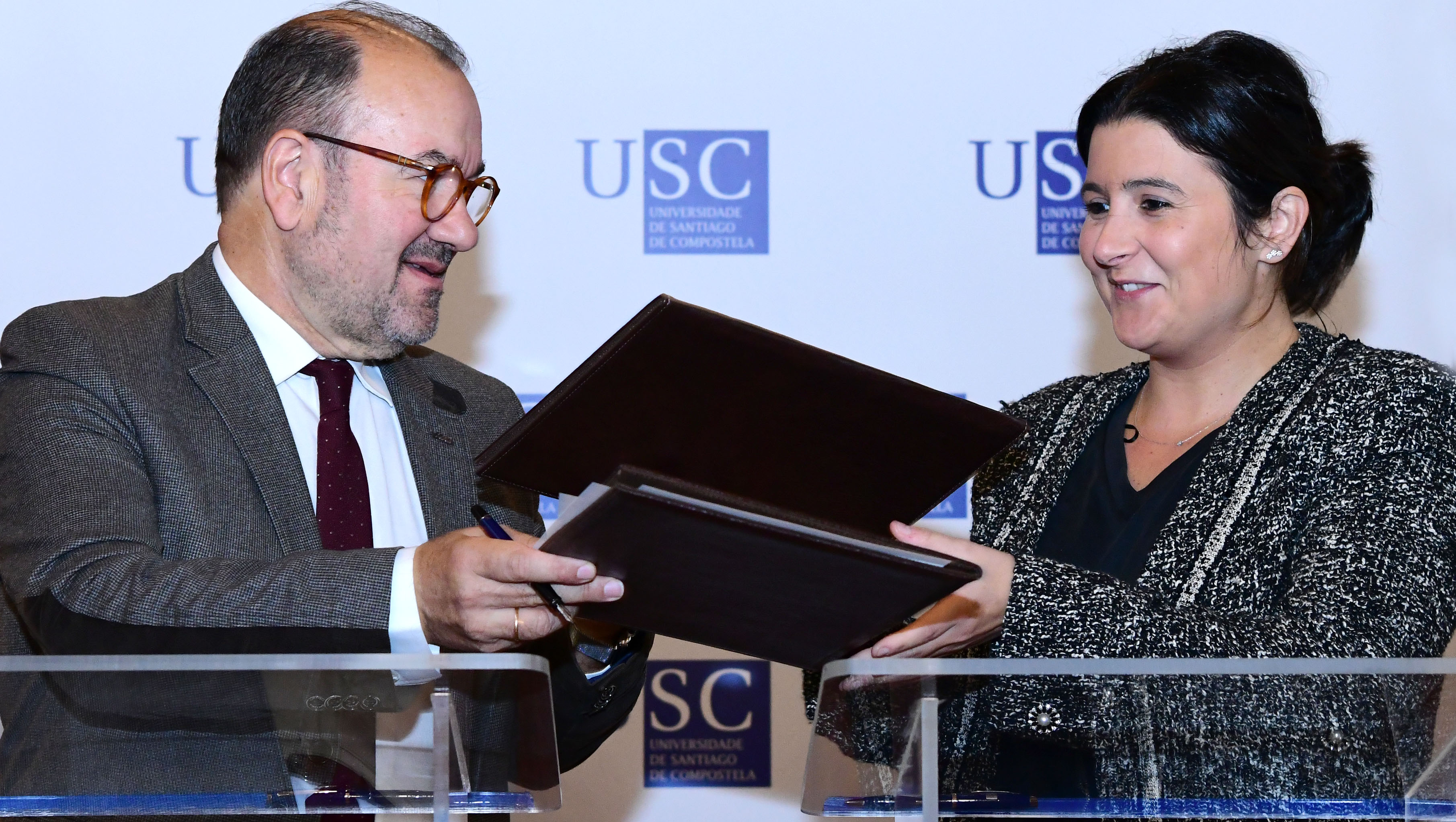 O reitor da USC e a presidenta do Consello asinaron esta mañá o convenio de colaboración para o desenvolvemento deste curso que comezará o día 23