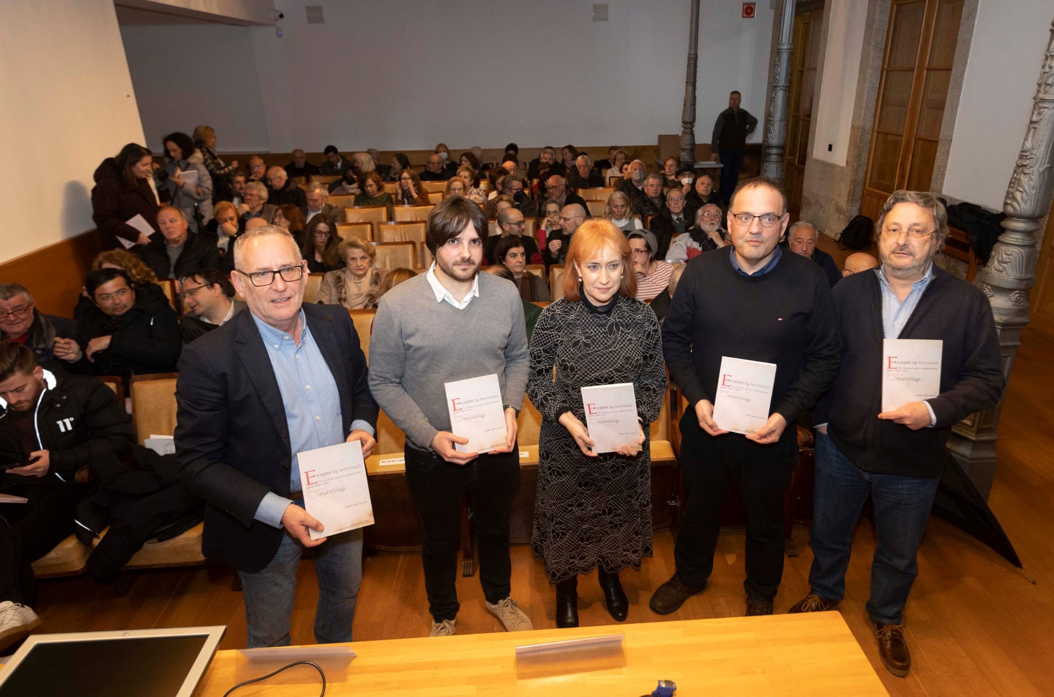 A USC e o Consorcio de Santiago acaban de presentar unha nova obra do seu programa de co edicións, nesta ocasión Escribir en Santiago: el universo gráfico compostelano entre 1450 y 1550, unha documentada monografía que, transcendendo a análise puramente paleográfica, de enorme valor histórico, permite descubrir moitos trazos do transcorrer cotián da vida da sociedade compostelá da época. Partindo dun exhaustivo e erudito labor de esculca arquivística, o autor, Adrián Ares Legaspi, egresado da USC, aborda o desenvolvemento que, co Humanismo e o Renacemento, coñeceu a escritura, presente en todas as relacións sociais, administrativas e económicas da época.
