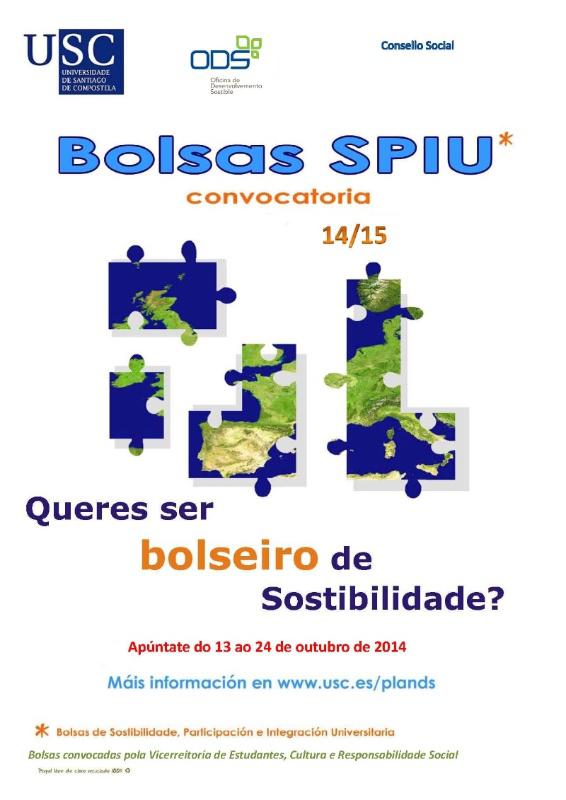 A Oficina de Desenvolvemento Sostible da USC oferta este curso 33 bolsas de Sostibilidade, Participación e Integración Universitaria (SPIU) para desenvolver accións relacionadas co medio ambiente e o desenvolvemento sostible. A convocatoria, financiada polo Consello Social da USC, contempla 21 bolsas para os centros docentes do Campus de Santiago, 6 para o de Lugo e 6 para residencias do SUR. O prazo de solicitudes permanecerá aberto ata o día 24 de outubro.