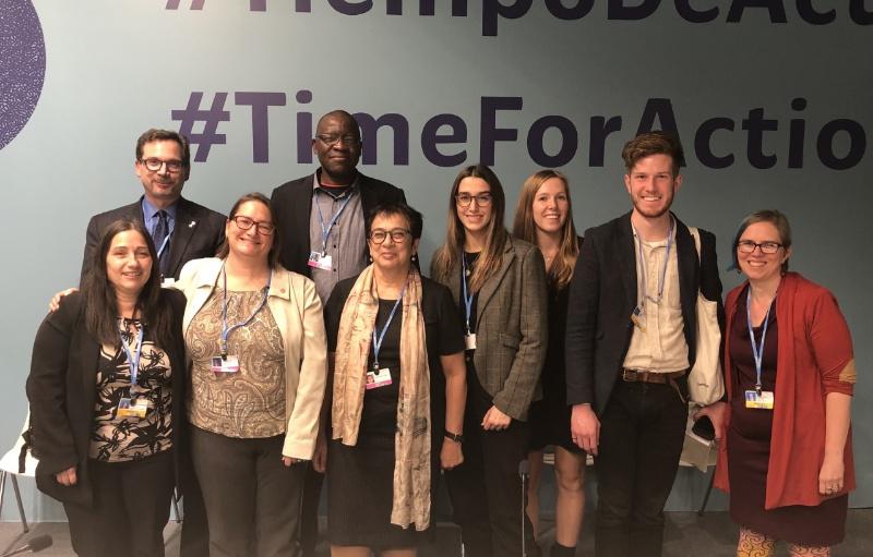 Presentación de propostas innovadoras da USC na zona vermella do COP 25, en Madrid Rosa Mosquera, á esquerda, con representatnes internacionais cos que compartiu intervención