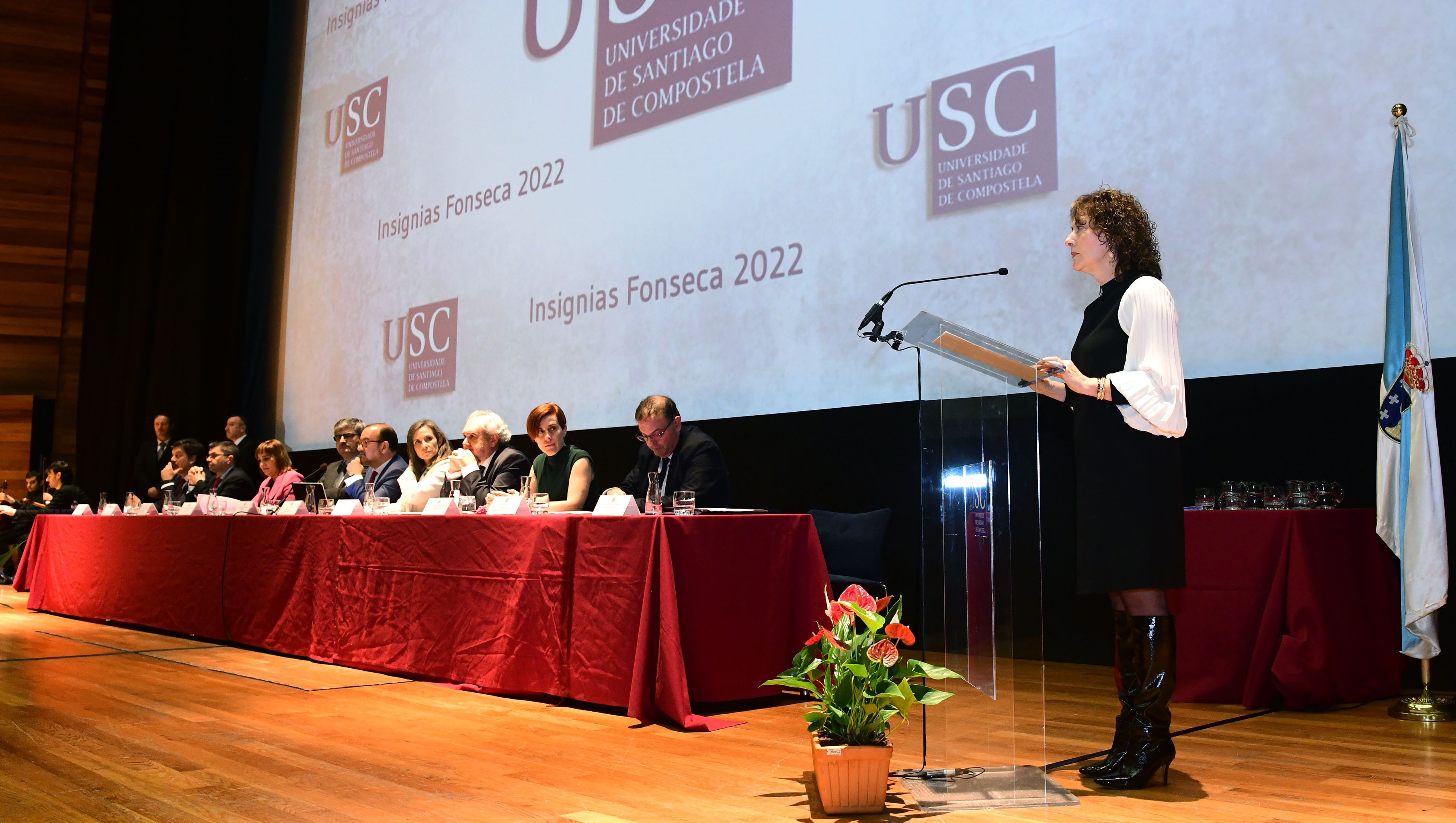 A profesora Vilavedra fixo unha alusión directa á situación vivida nos últimos anos por mor da pandemia. “Sobrevivimos porque actuamos como unha comunidade” que pospuxo os seus intereses particulares, dixo. O desafío ao que como colectividade se enfronta a universidade é “recuperar o sentido de comunidade o antes posible. É responsabilidade nosa restituír a dimensión como comunidade na que recoñecernos e abeirarnos” para que a universidade non deixe de ser aquela ferramenta capaz de cambiar o mundo.