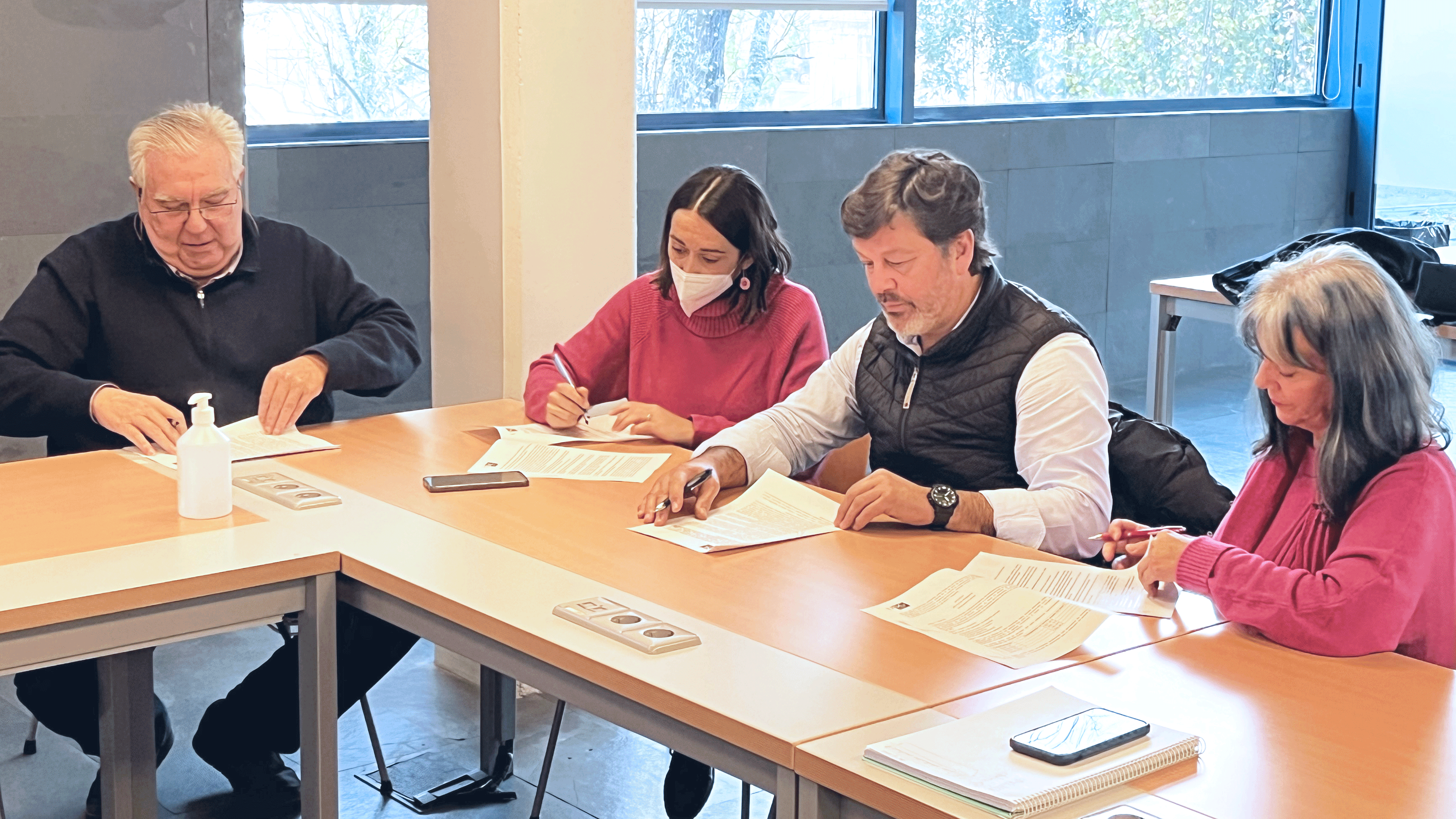 José Ramón Bahamonde Hernández, Catuxa Lombao Vázquez, Javier Ferreira e Xosefina Rosa Guitián na sinatura do acordo