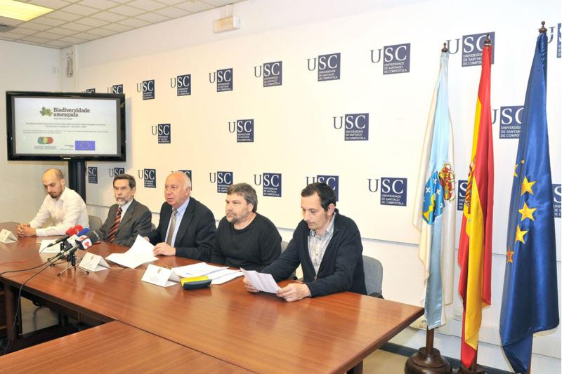 Inventariar a biodiversidade vexetal transfronteiriza ameazada de Galicia e o Norte de Portugal e así definir os espazos máis importantes para a súa conservación é o propósito do proxecto BIODIV_GNP que, liderado pola USC, está co financiado polo Programa de Cooperación Transfronteiriza España- Portugal (POCTEP ) 2007-2013 da UE. Os investigadores implicados constatan que a rexión Galicia e o Norte de Portugal acubilla un elevado número de especies endémicas e ameazadas consecuencia dunha forte degradación do medio que se intensificou nas últimas décadas, especialmente no eixo costeiro, “en parte debido á intensa humanización”. Só nesta zona supéranse as 30 especies endémicas, mentres que en Polonia existen 3 ou unha en toda Irlanda. Esta situación de ameaza común a ambos os dous lados da fronteira, unida á “descoordinación” entre os dous Estados en materia de conservación, facía “urxente” identificar e avaliar a biodiversidade vexetal ameazada, definir as prioridades de conservación e elaborar unha estratexia transfronteiriza e coordinada de xestión e de minimización de impactos, explican os científicos. Por todo isto, do proxecto agardan conseguir a identificación das especies ameazadas coa extinción, a creación dunha base de datos que permita coñecer cal é e como se distribúe esta flora, a avaliación dos actuais espazos protexidos e a proposta de novos, a actualización dos Catálogos de Especies Protexidas de Galicia e Portugal, a implicación da sociedade a través dun web colaborativo e o establecemento dunha rede transfronteiriza de roteiros ambientais de áreas vexetais importantes. BIODIV_GNP (‘Biodiversidade vexetal ameazada da eurorrexión Galicia-Norte de Portugal. Coñecer, xestionar e implicar’) presentárona este martes o reitor da USC, Juan Casares; o profesor de Botánica da USC e xefe de fila do proxecto, Santiago Ortiz; o profesor de Bioloxía da Universidade de Porto, Francisco Barreto; Carlos Bastos Guerra, da Fundação Fernão Magalhães para o Desenvolvimento e do Instituto Politécnico de Viana do Castelo; e o xefe do servizo de Conservación da Biodiversidade da Dirección Xeral de Conservación da Natureza, Jesús Santamarina. Todos eles, xunto coa Fundación Centro de Estudos Eurorrexionais, representantes das entidades participantes.