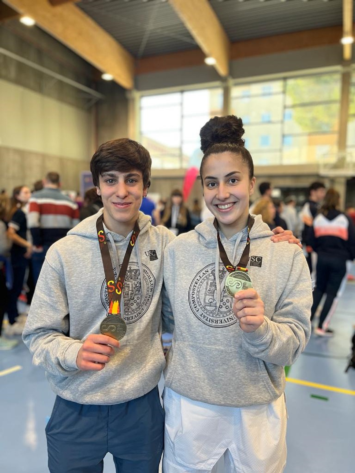 O estudante da Facultade de Medicina e Odontoloxía, Tomás Fernández, e a alumna de Psicoloxía, Irene Montemuíño, acaban de proclamarse vencedores nos Campionatos de España Universitarios de Taekwondo celebrados en Burgos os días 25 e 26 de marzo. Fernández logrou o ouro na modalidade de poomsaes, mentres que Montemuíño acadouno na categoría feminina -62 kg.