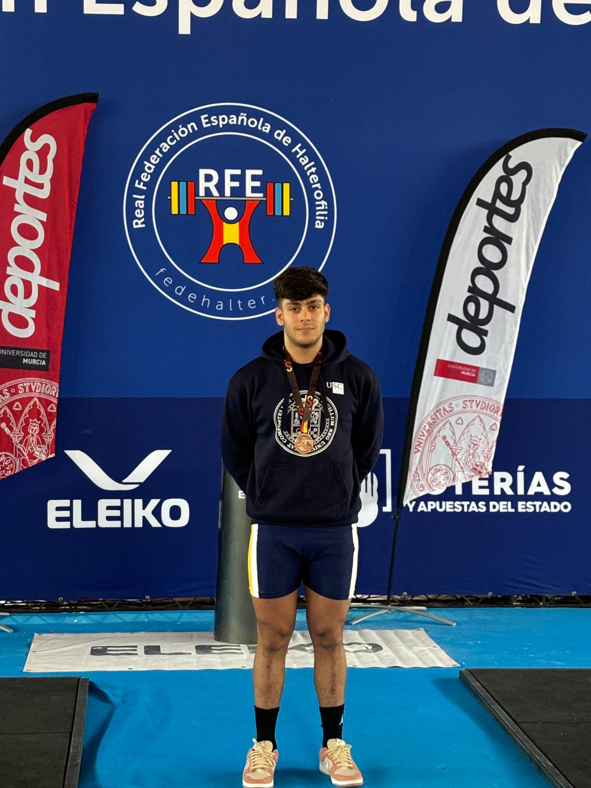 O deportista da USC David Rodríguez Carballo, estudante de Veterinaria, vén de conseguir a medalla de bronce na categoría de menos de 81 quilos do Campionato de España Universitario de halterofilia celebrado en Los Alcázares (Murcia). Rodríguez Carballo obtivo un total de 245 puntos sumando os logrados nas dúas partes da proba na que participou no campionato de halterofilia, nas que conseguiu 102 na primeira e 143 na segunda.