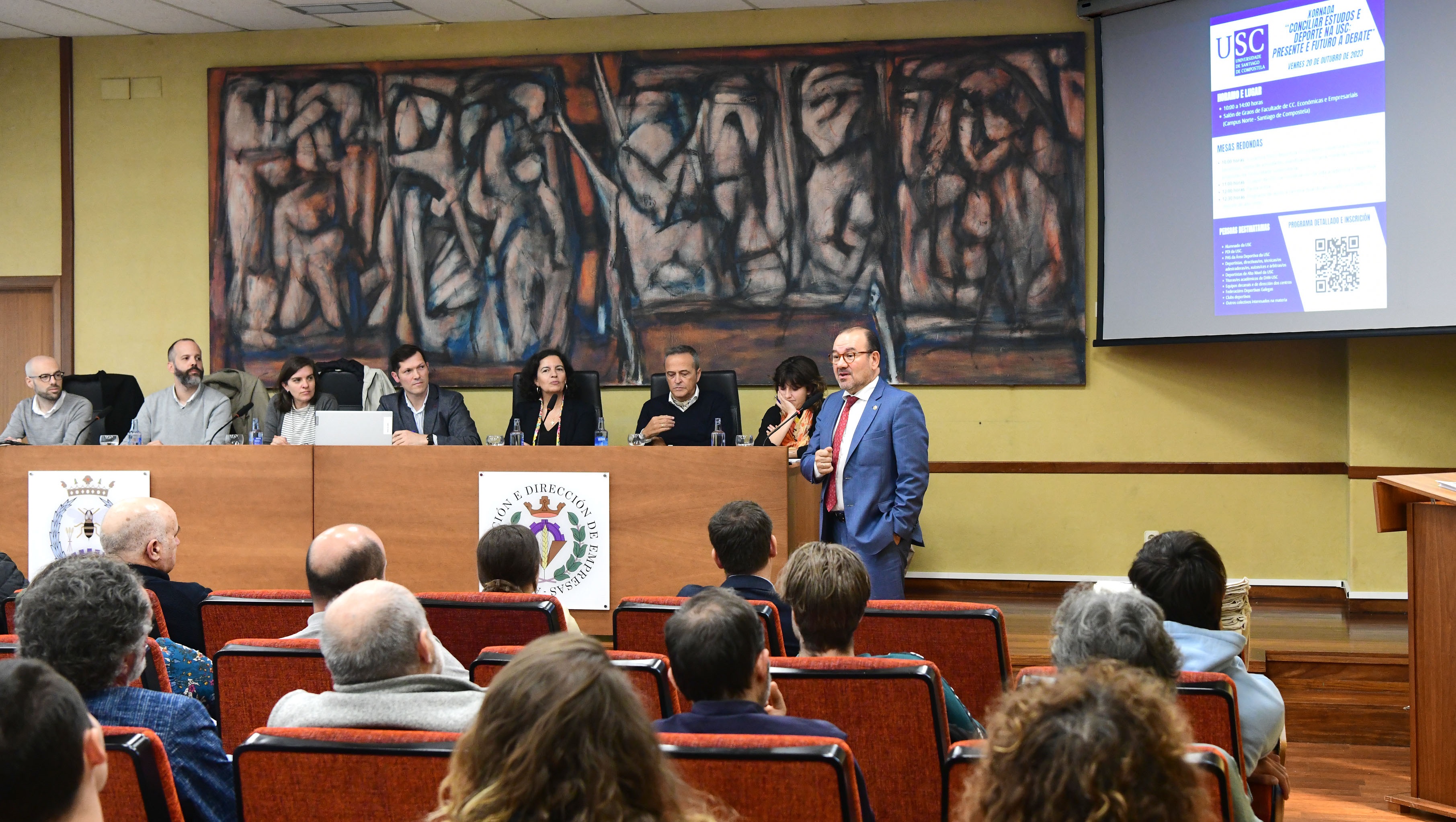 A xornada, organizada pola Área Deportiva, o Centro de Formación de Persoal e a Cátedra Institucional Vida Saudable, reuniu alumnado e PDI da USC, PAS da Área Deportiva, deportistas, profesionais do eido directivo, técnico e de adestramento, xuízas e xuíces,  especialistas en arbitraxe, titorías académicas de deportistas de alto nivel da USC, equipos decanais e de dirección dos centros, federacións deportivas galegas e clubs deportivos.