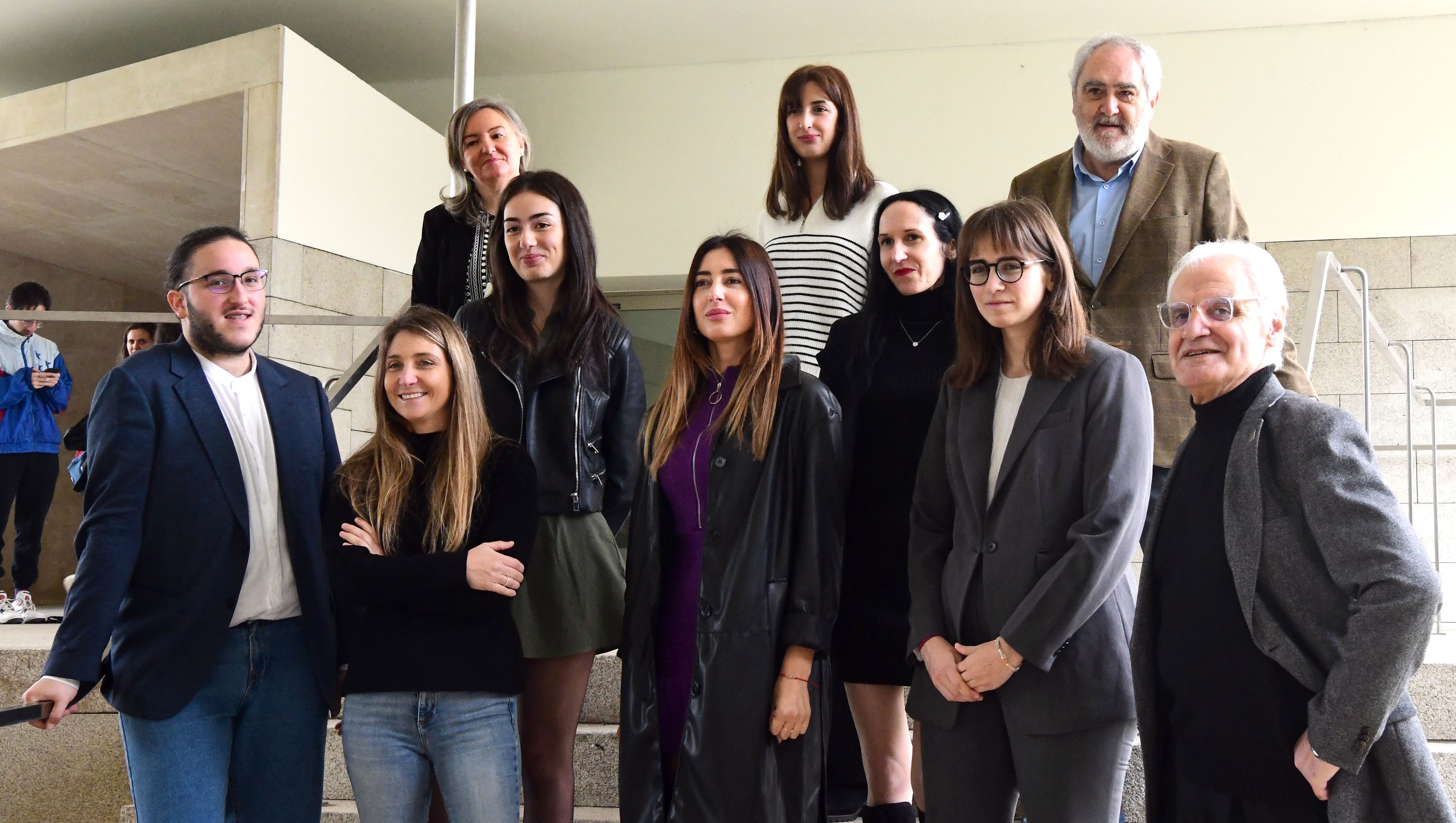 O vicerreitor de Profesorado da USC e académico correspondente, Ernesto González Seoane; o presidente da Real Academia Galega, Víctor F. Freixanes; a decana de Ciencias da Comunicación, Ana Isabel Rodríguez Vázquez; e cinco protagonistas da serie e o seu director participaron este venres na presentación celebrada no centro. Foi un acto que contou coa asistencia do alumnado, o zume do que se nutre ‘Novas voces para a lingua’ a través de traballos fin de grao, titorizados dende a propia Facultade e que contan tamén co apoio da RAG en distintas fases da produción e da realización.