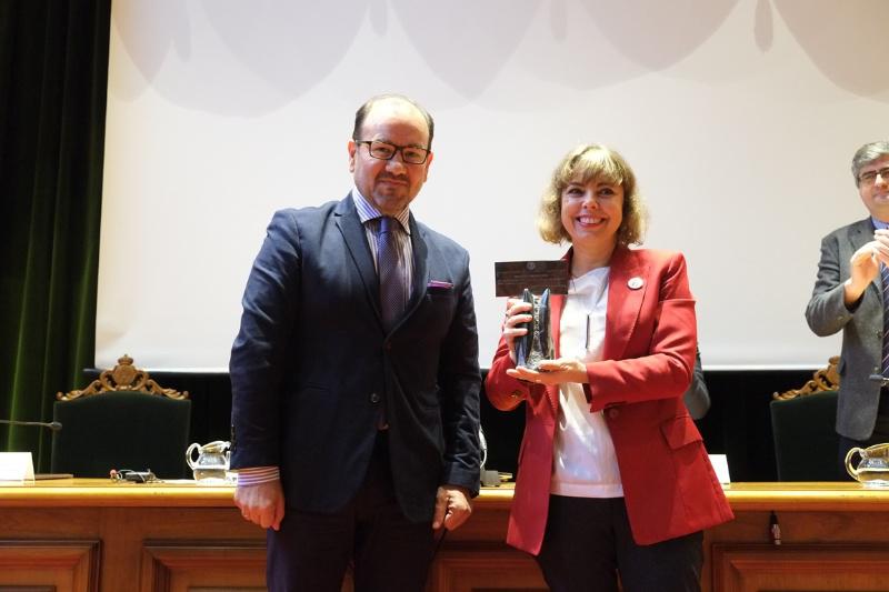 A directora da Biblioteca, María Isabel Casal Reyes, recolleu este xoves de man do reitor Antonio López a mención honorífica coa que a Universidade de Santiago recoñece o esforzo deste servizo universitario en prol da igualdade de xénero.