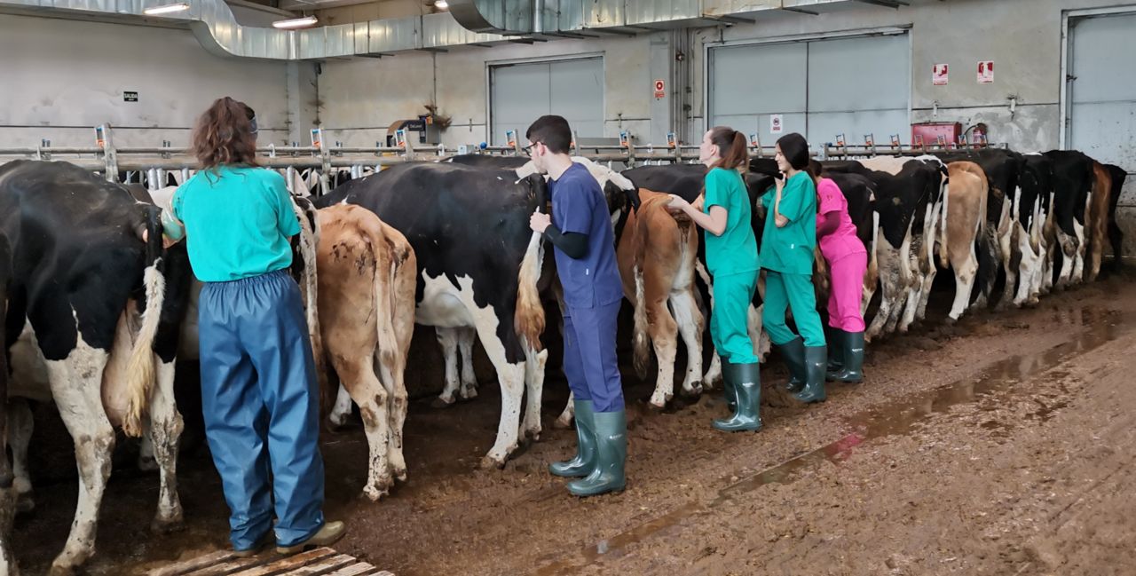 Alumnos de Veterinaria nunha sesión de prácticas con gando vacún. Foto: Santi Alvite