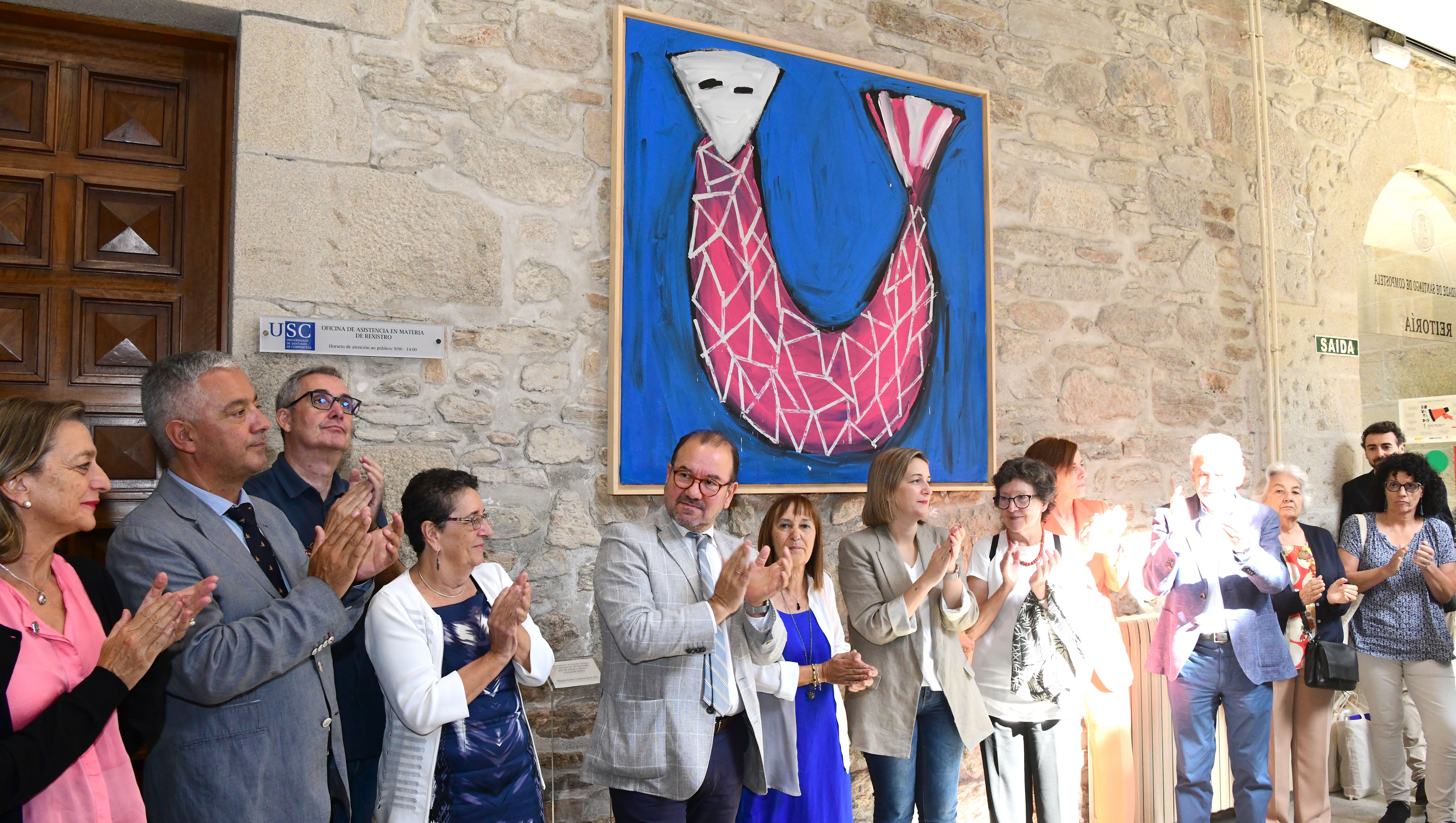 O reitor da USC, Antonio López; o secretario xeral de Política Lingüística, Valentín García; a segunda tenente de Alcaldesa do Concello de Santiago, Míriam Louzao; o alcalde do Consello de Ames, Blas García Piñeiro; e a presidenta do Consello da Cultura Galega, Rosario Álvarez participaron na colocación desta peza cunha potente connotación simbólica relacionada coa Lenda da Serea, presente na heráldica galega e que inspirou a Castelao na súa proposta de escudo de Galicia. De feito, nas primeiras décadas do século XX, Castelao e outros investigadores do SEG recolleron e catalogaron por toda Galicia unha gran cantidade de heráldicas con esta imaxe.