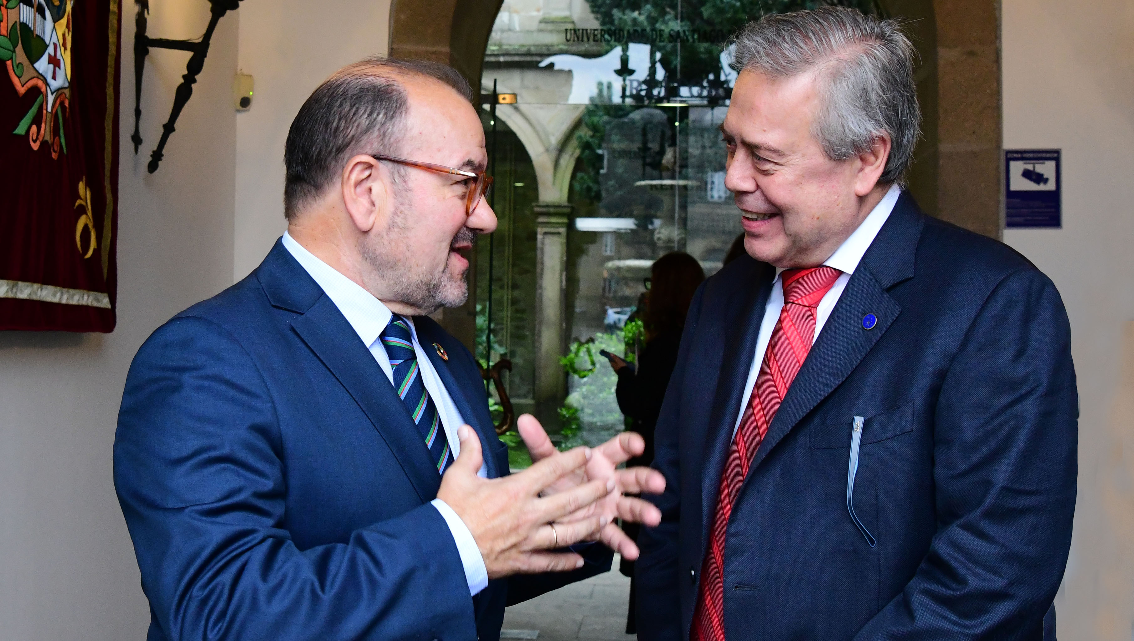 O reitor e o conselleiro conversan antes da sinatura do protocolo. Foto: Santi Alvite
