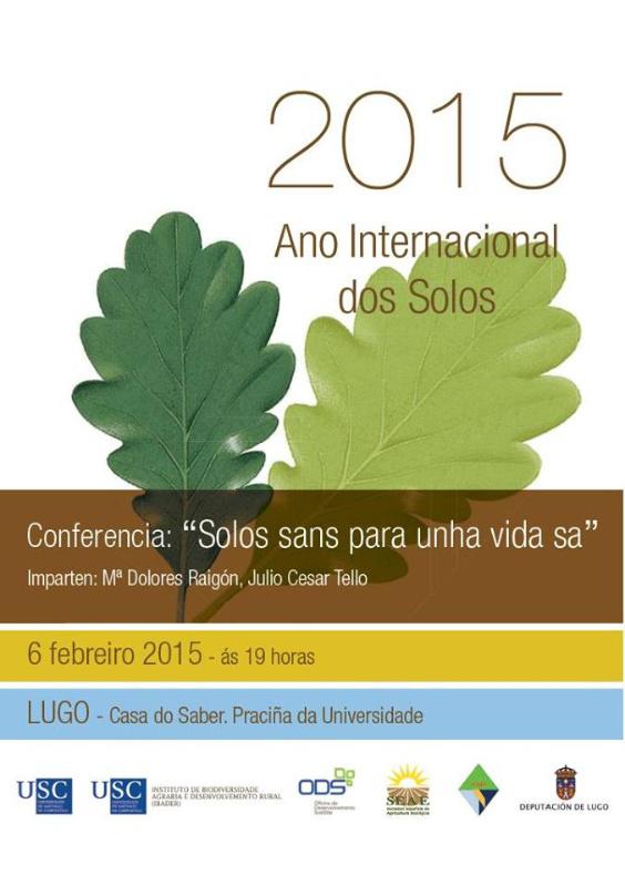 A USC e a Sociedade Española de Agricultura Ecolóxica (SEAE) conmemorarán en Lugo o Ano Internacional dos Solos cunha sesión informativa aberta ao público que se desenvolverá o vindeiro 6 de febreiro na Casa do Saber de Lugo. A presidenta da SEAE, María Dolores Raigón, e o enxeñeiro agrónomo e investigador e profesor da Universidade de Almería, Julio César Tello Marquina, serán os relatores encargados de guiar esta sesión, a través da que buscan sensibilizar á sociedade civil e ás distintas administracións respecto da importancia que ten o suelo para a vida humana. Esta sesión informativa, en cuxa organización tamén participa o Ibader, a Deputación de Lugo e a Sociedade Galega de Agroecoloxía, servirá asemade para incidir nos obxectivos específicos establecidos pola FAO co gallo da celebración en 2015 do Ano Internacional dos Solos.