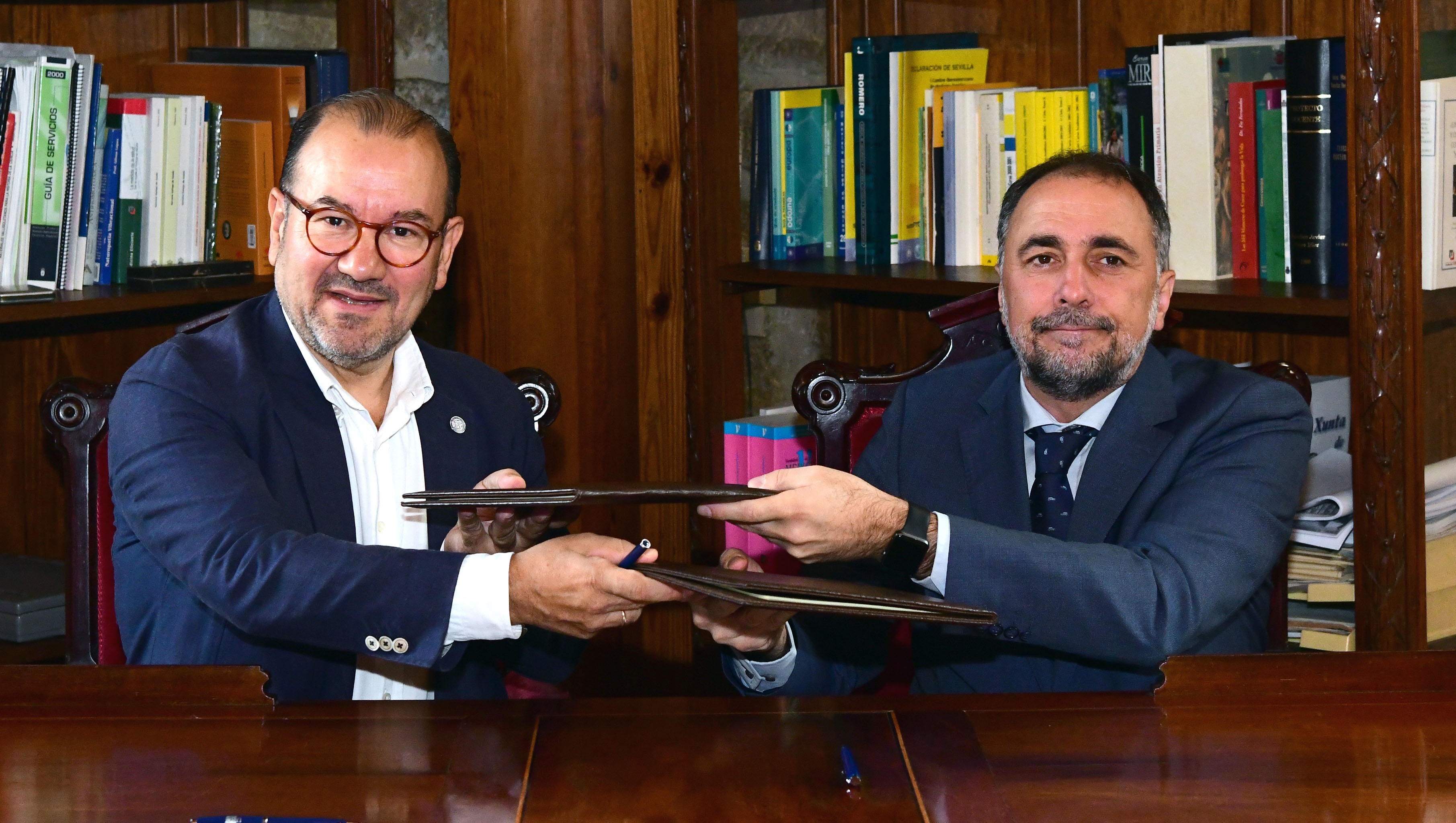 O convenio asinárono este martes o reitor Antonio López e o conselleiro de Sanidade e presidente do Sergas, Julio García Comesaña, nun acto que se desenvolveu na Facultade de Medicina e Odontoloxía. No acto tamén estiveron presentes Ernesto Xosé González Seoane, vicerreitor de Profesorado; Julián Álvarez Escudero, decano da Facultade; Estrella López-Pardo Pardo, xerenta do Sergas; e Carmen Balboa Salgado, vicexerenta do Servizo Galego de Saúde.