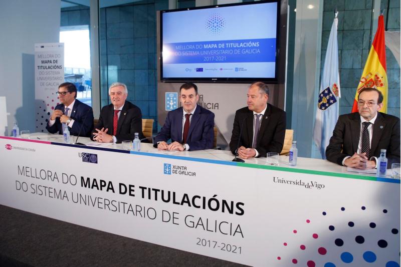 A oferta docente da USC incorporará nos vindeiros cursos un total de sete novos graos, segundo o documento de Mellora do mapa de titulacións do Sistema Universitario de Galicia 2017-2021 presentado este luns polos tres reitores galegos e o conselleiro de Cultura, Educación e Ordenación Universitaria. “Consideramos moi positivo o establecemento dun marco de colaboración interuniversitaria” aseverou o reitor Juan Viaño durante a presentación do citado plan de mellora. Na súa opinión “este é o xeito idóneo de concibir a Universidade galega dos próximos anos. Esa é a senda do crecemento”.