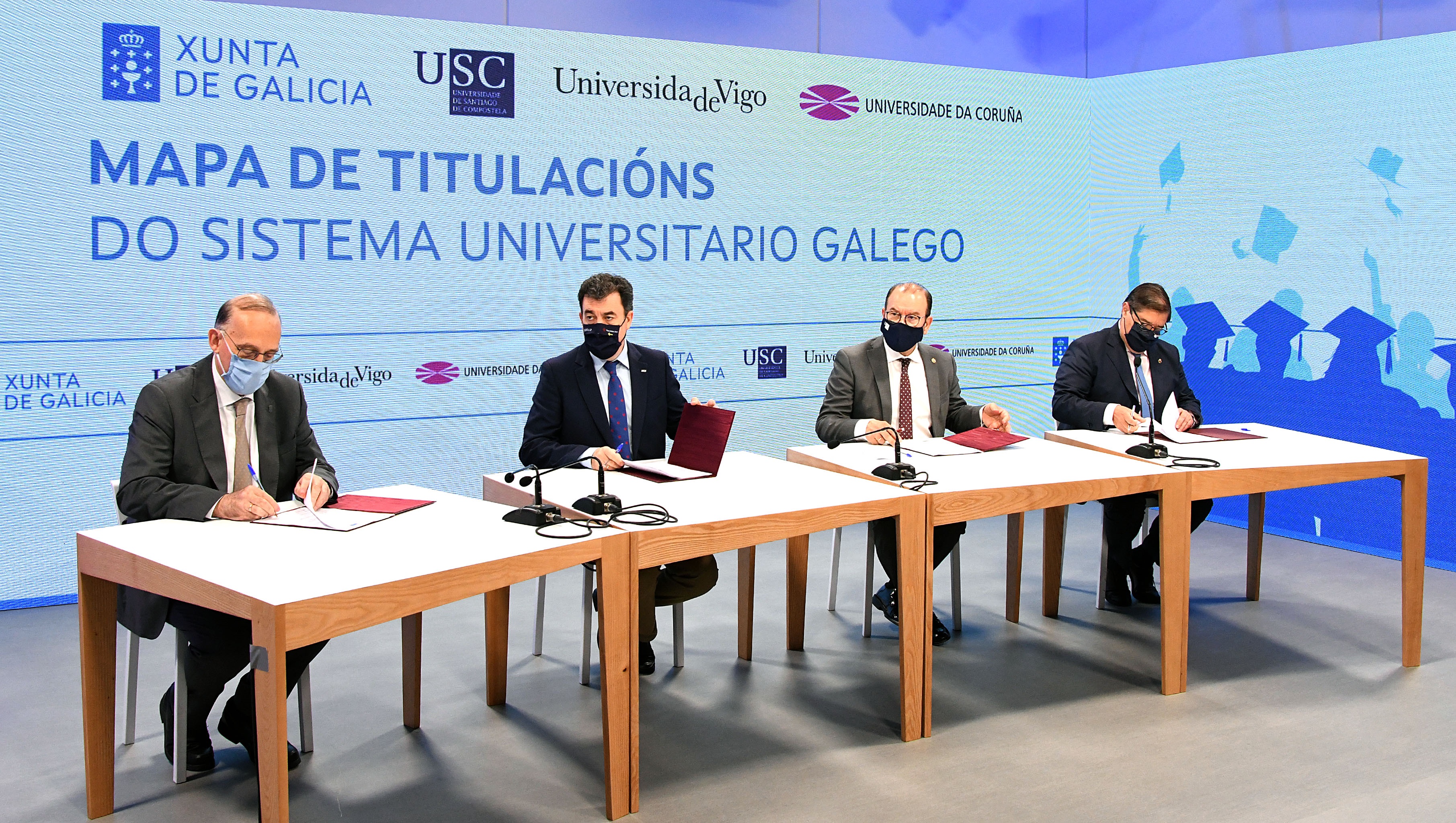 O acto serviu para ratificar a que será a folla de ruta das titulacións universitarias no sistema público galego para o período 2022-2026, co que se dá continuidade ao acordo pioneiro aprobado en 2017 para o período 17-21 que agora remata. Este documento, destacaron os asinantes, “é froito do diálogo e do entendemento entre as administracións educativa e universitarias a prol da innovación, do talento universitario, do benestar social e do crecemento produtivo” xa que “as nosas tres grandes institucións universitarias son o catalizador do futuro de Galicia, que se verá reforzado a través das novas titulacións para os vindeiros cinco anos”. Un dos obxectivos é, precisamente, completar o sistema público de titulacións de grao par que calquera poida realizar estudos universitarios sen saír da comunidade autónoma.